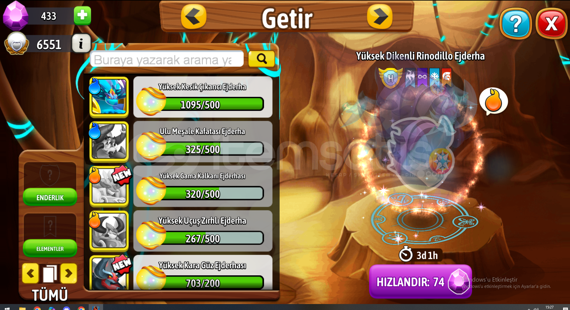 Dragon city Yüksek Kesik Çıkarıcı Ejderhası(500)
