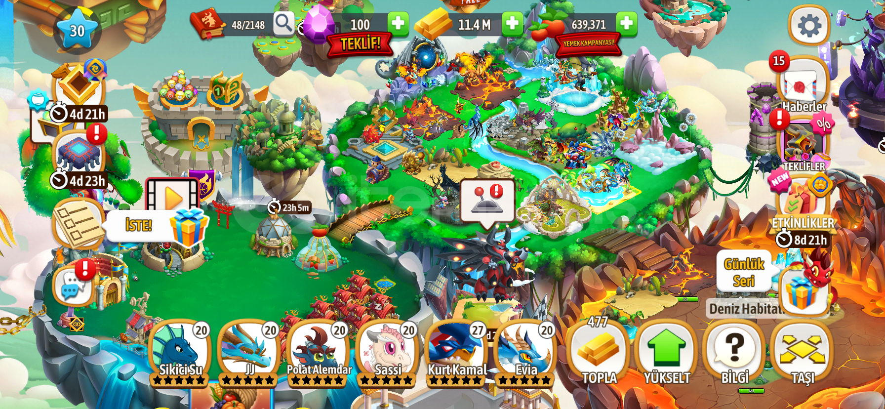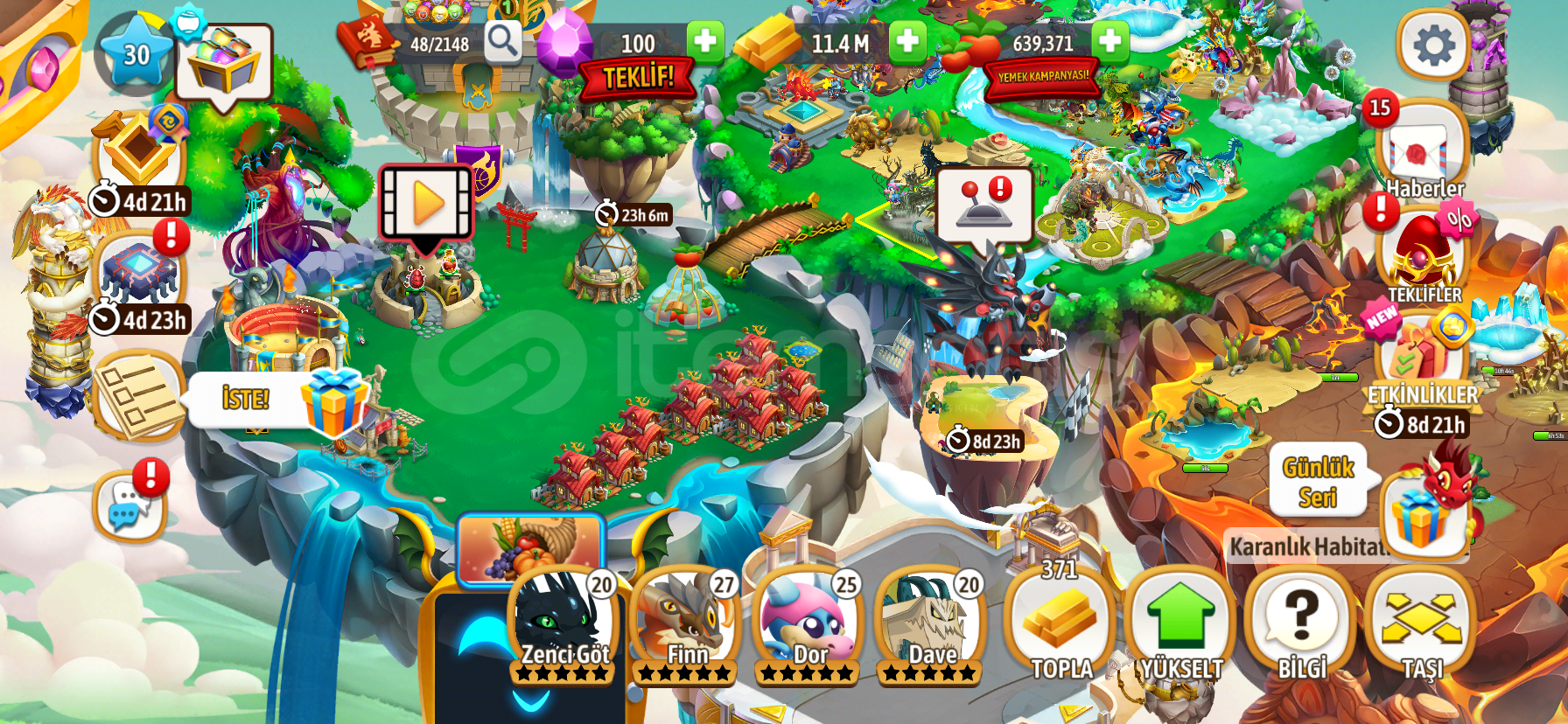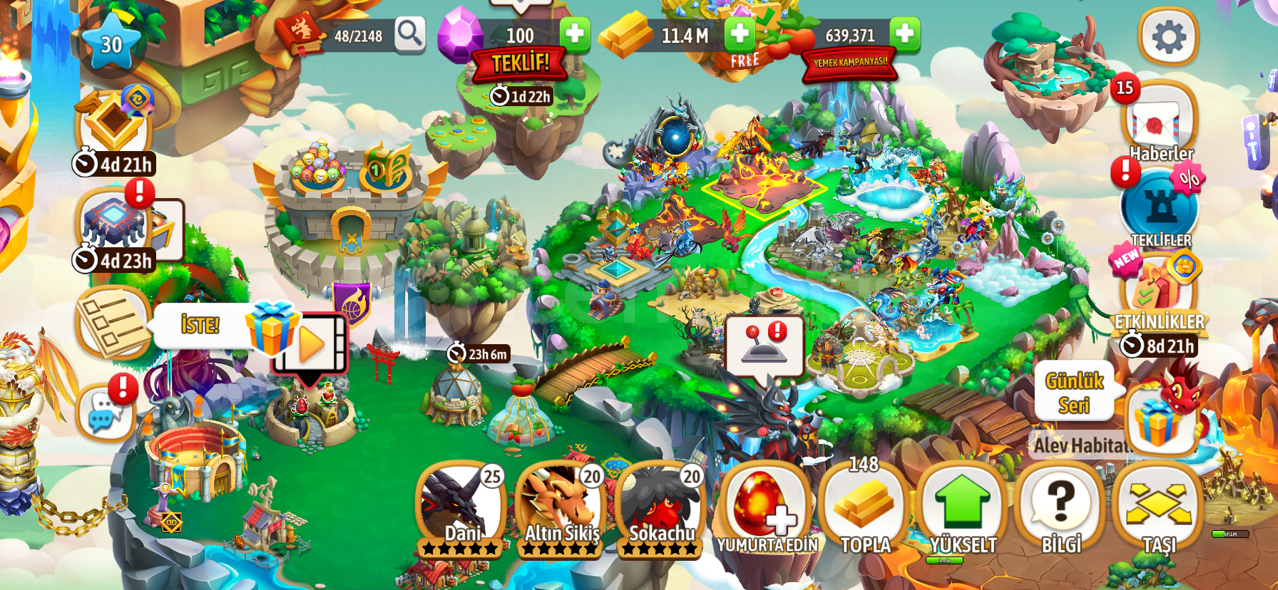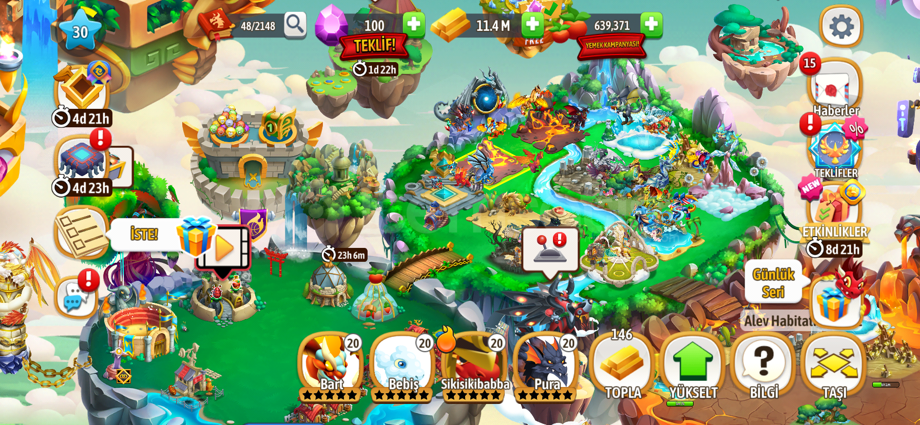 •Fb ve Apple bağlı•11M Para 100 Elmas Vardır•3 Ada Açık•640 Bin Yiyicek Vardır•Nadir Ejderhalar Vardır(Fotoğraflarda vardır)•Mail ile beraber verilicektir•İndirim Olur