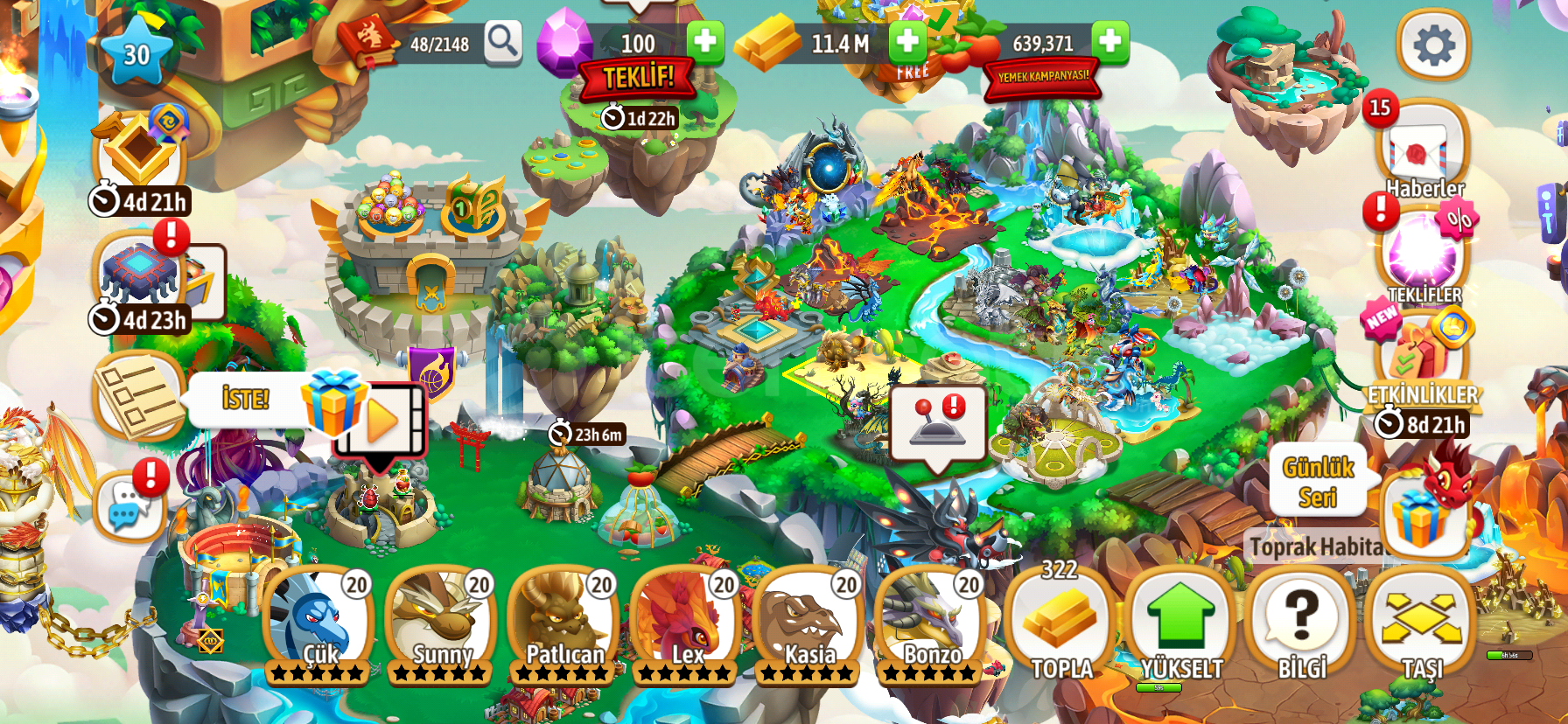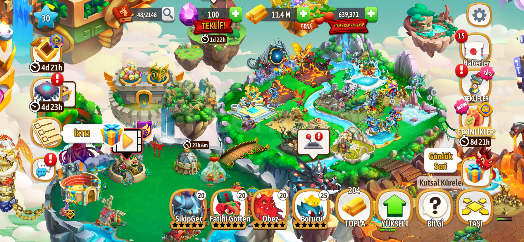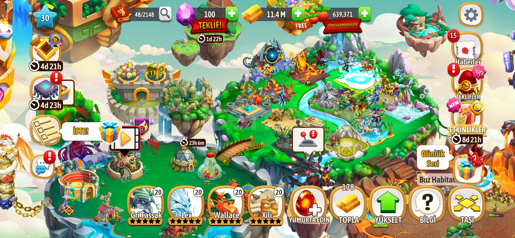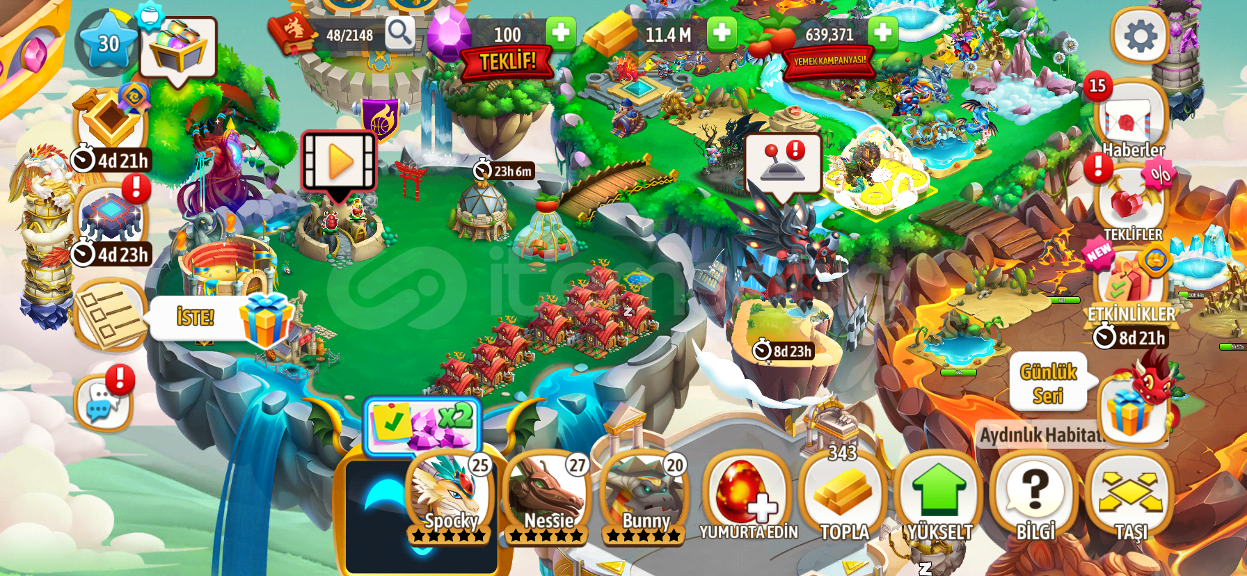 •Fb ve Apple bağlı•11M Para 100 Elmas Vardır•3 Ada Açık•640 Bin Yiyicek Vardır•Nadir Ejderhalar Vardır(Fotoğraflarda vardır)•Mail ile beraber verilicektir•İndirim Olur