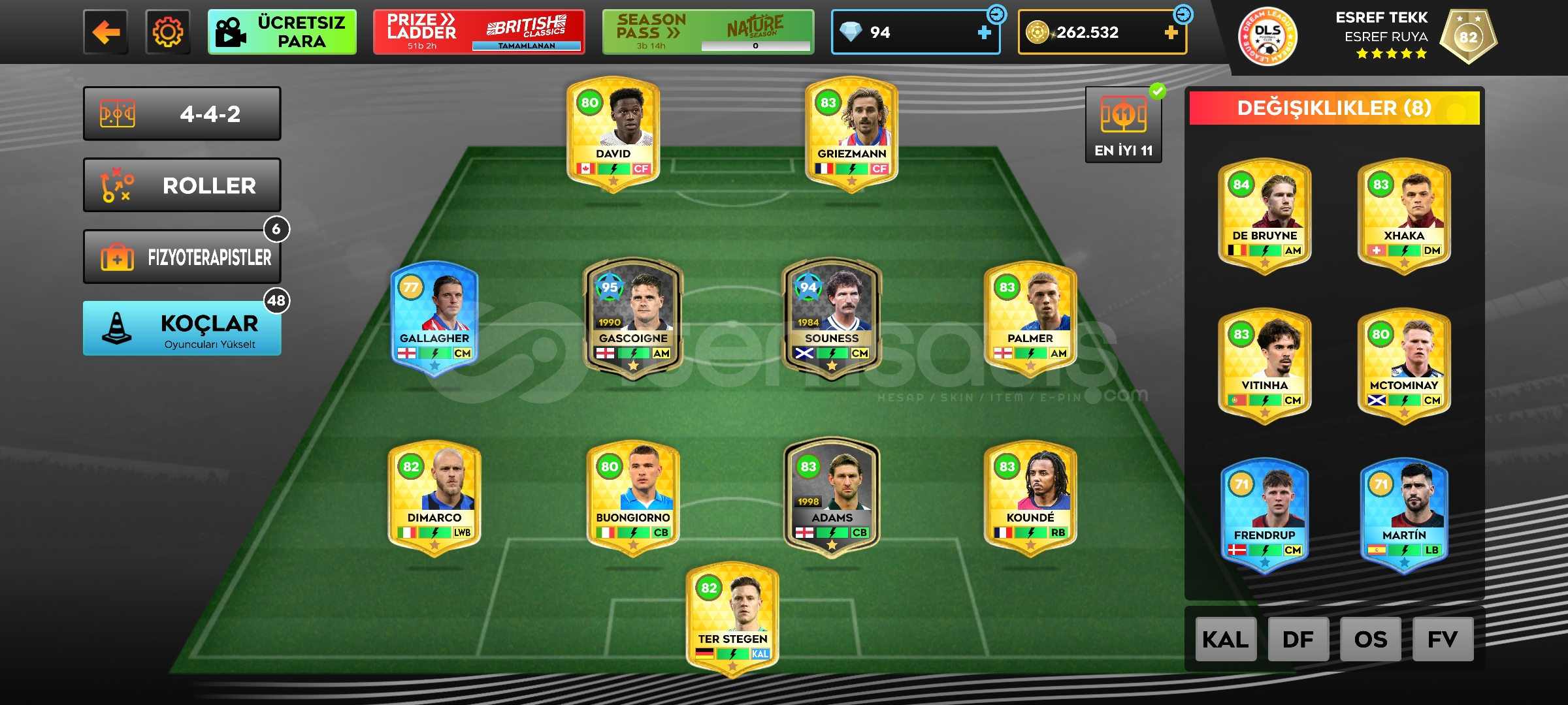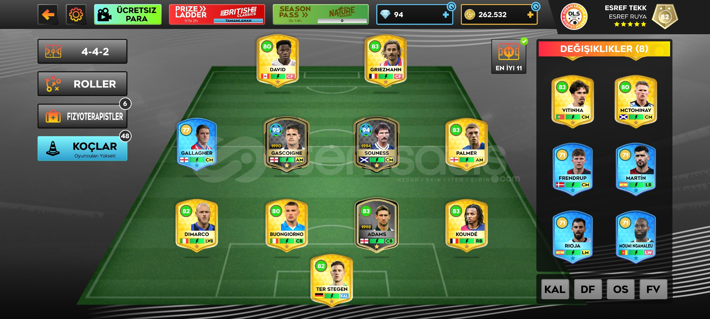 İstediğiniz kadroyu kurmanız için yılların emeği hesap en olur fiyata sizlere sunarım
