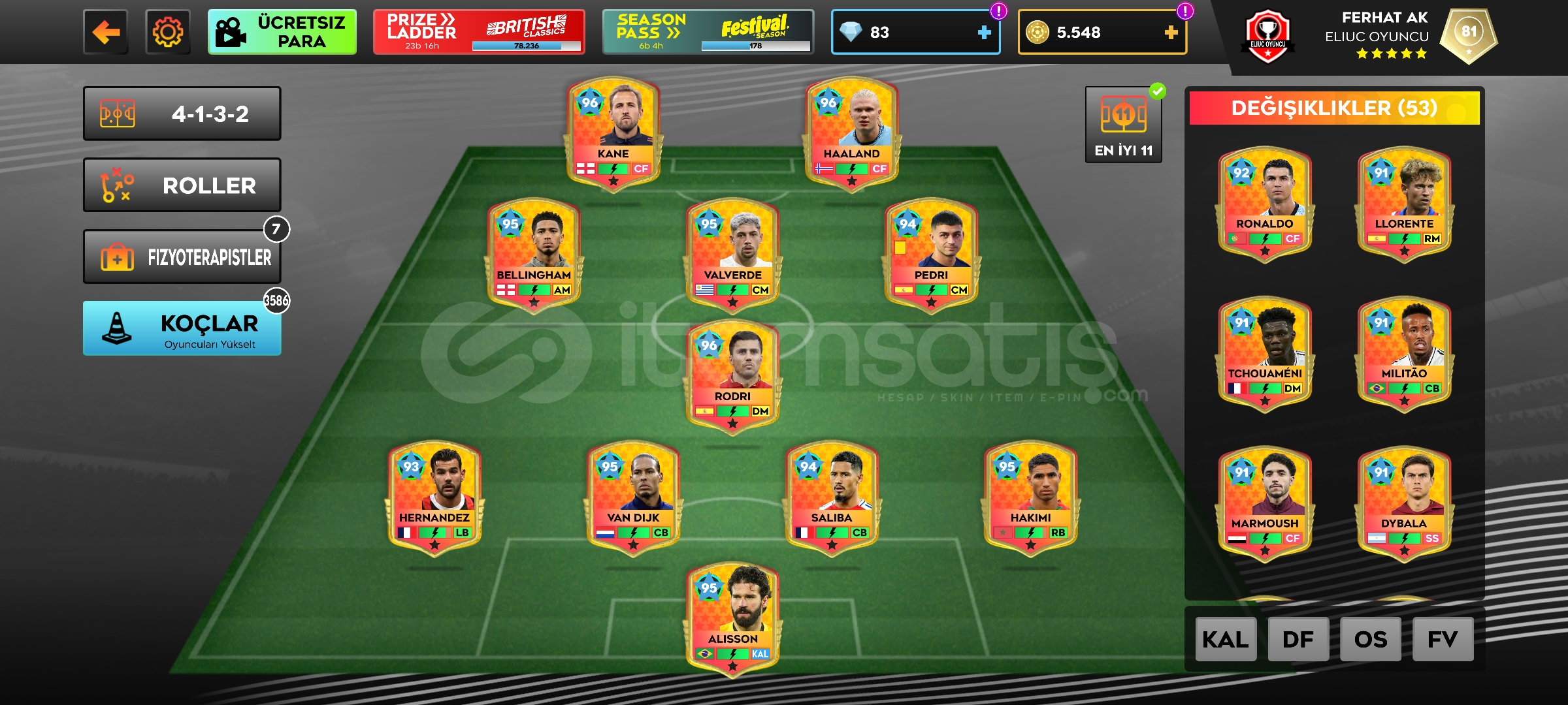 Hesabımızda tam 64 Max oyuncu mevcuttur araştırmanın bazıları max'tır stadyum maxter toplam 3.5 00 küsür yükseltme mevcuttur alıcıya şimdiden hayırlı olsun