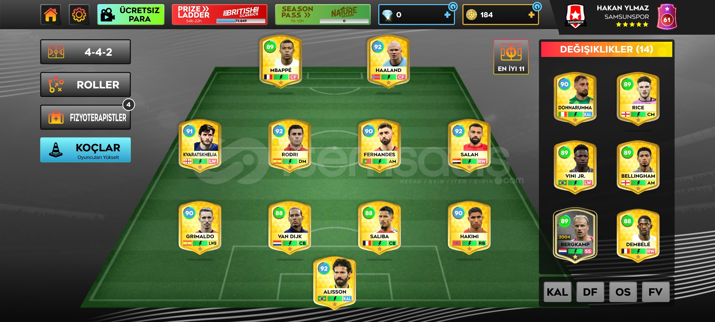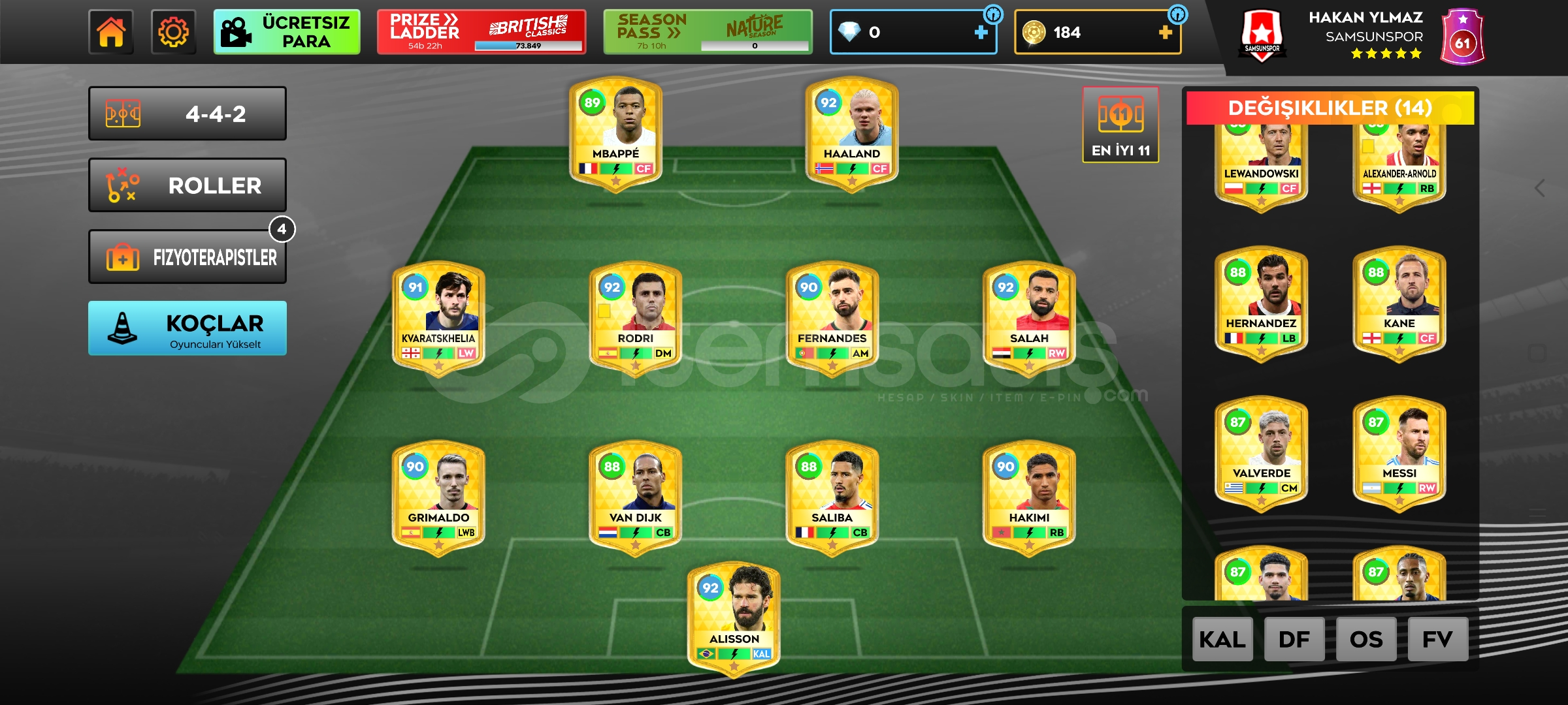 25 oyuncu var en düşüğü 87 seviyesinde gelişmiş hesaptır