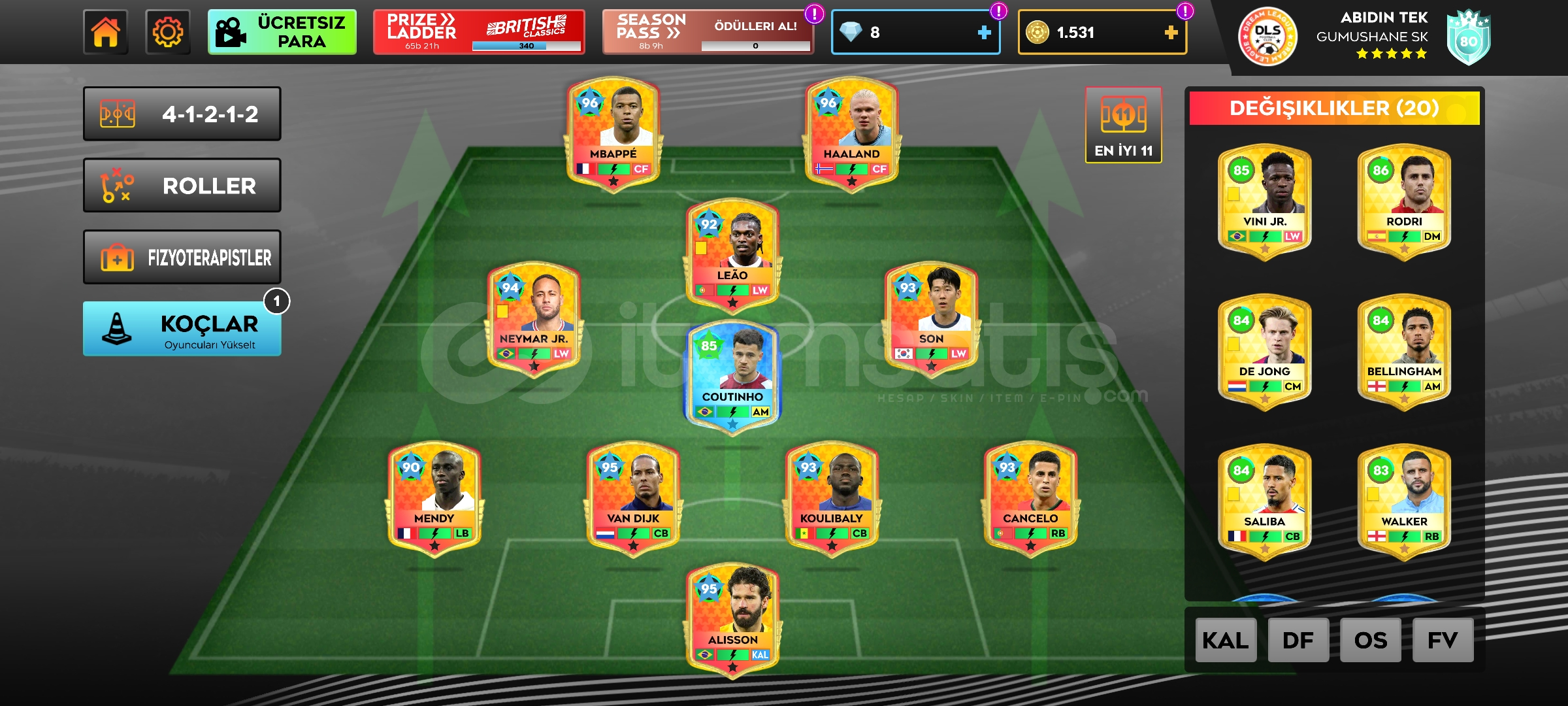 Hesabımıza gelecek olursak hesabımız görüldüğü gibi Max hesap altın oyuncuları vardır stadyumu Master eski genli birçok oyuncusu mevcuttur alıcısını şimdiden hayırlı olsun