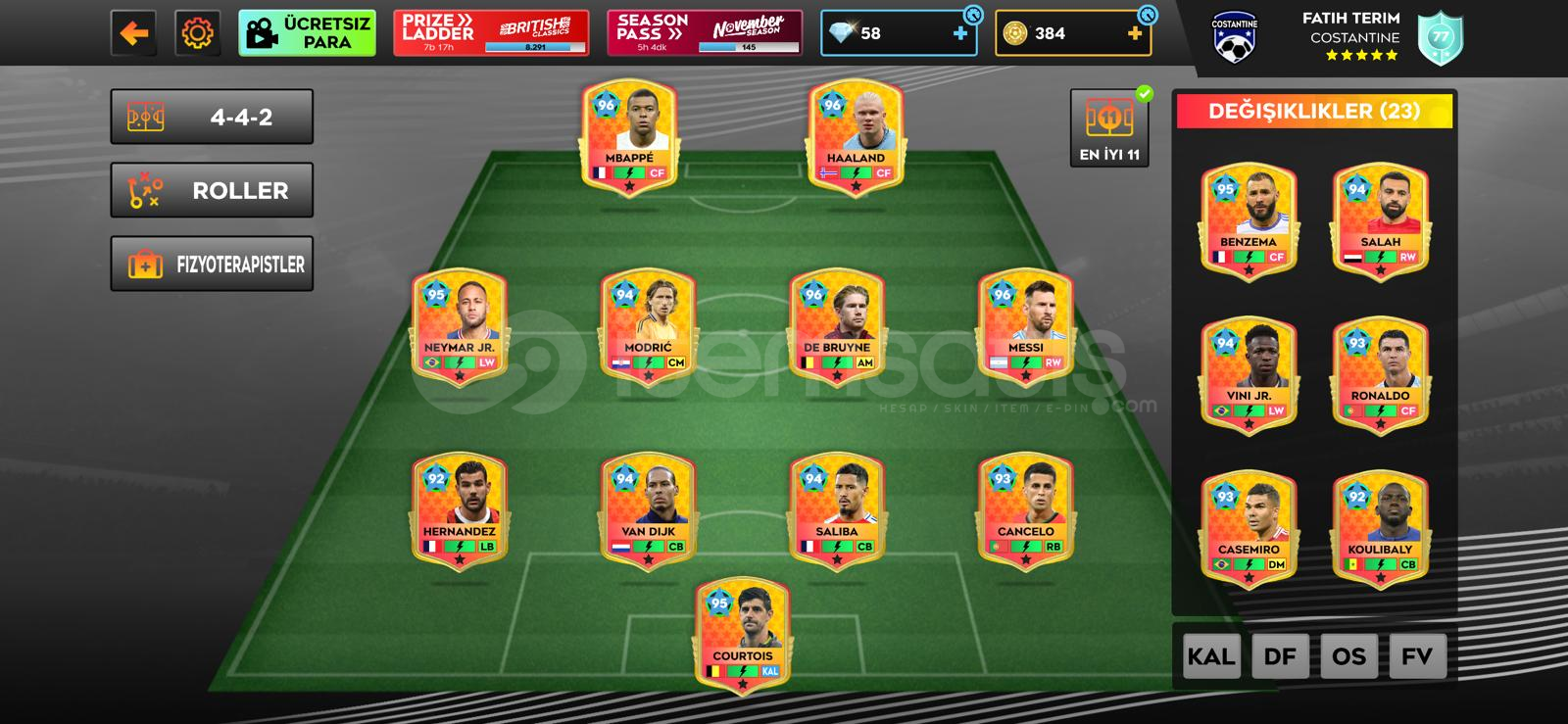 Hesapta var olan tüm oyuncular max yani full seviyededir hiç bir eksiği yok herşeyi ile tam bi hesaptırcostantineshop güvencesi ile.
