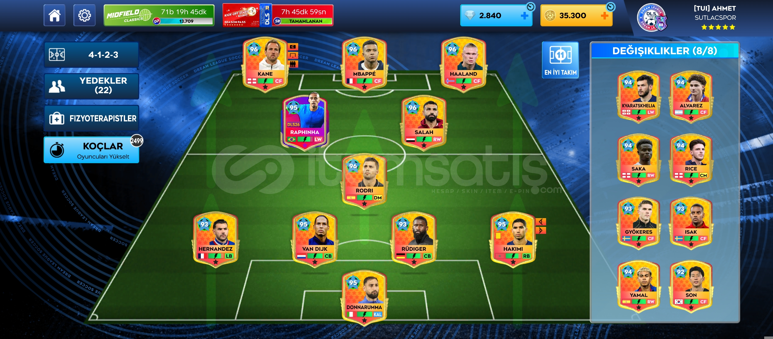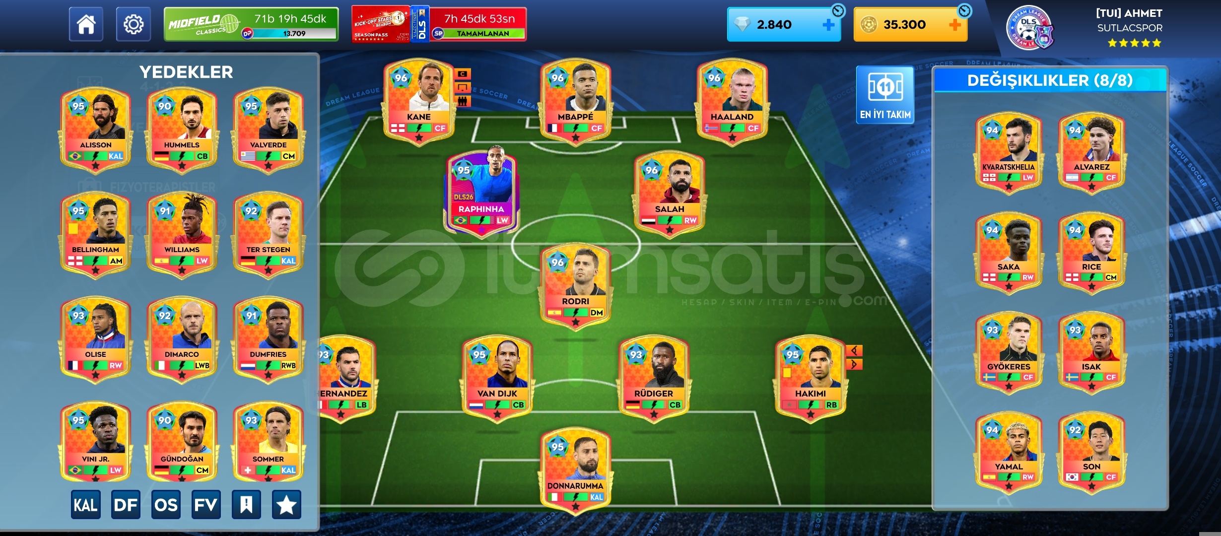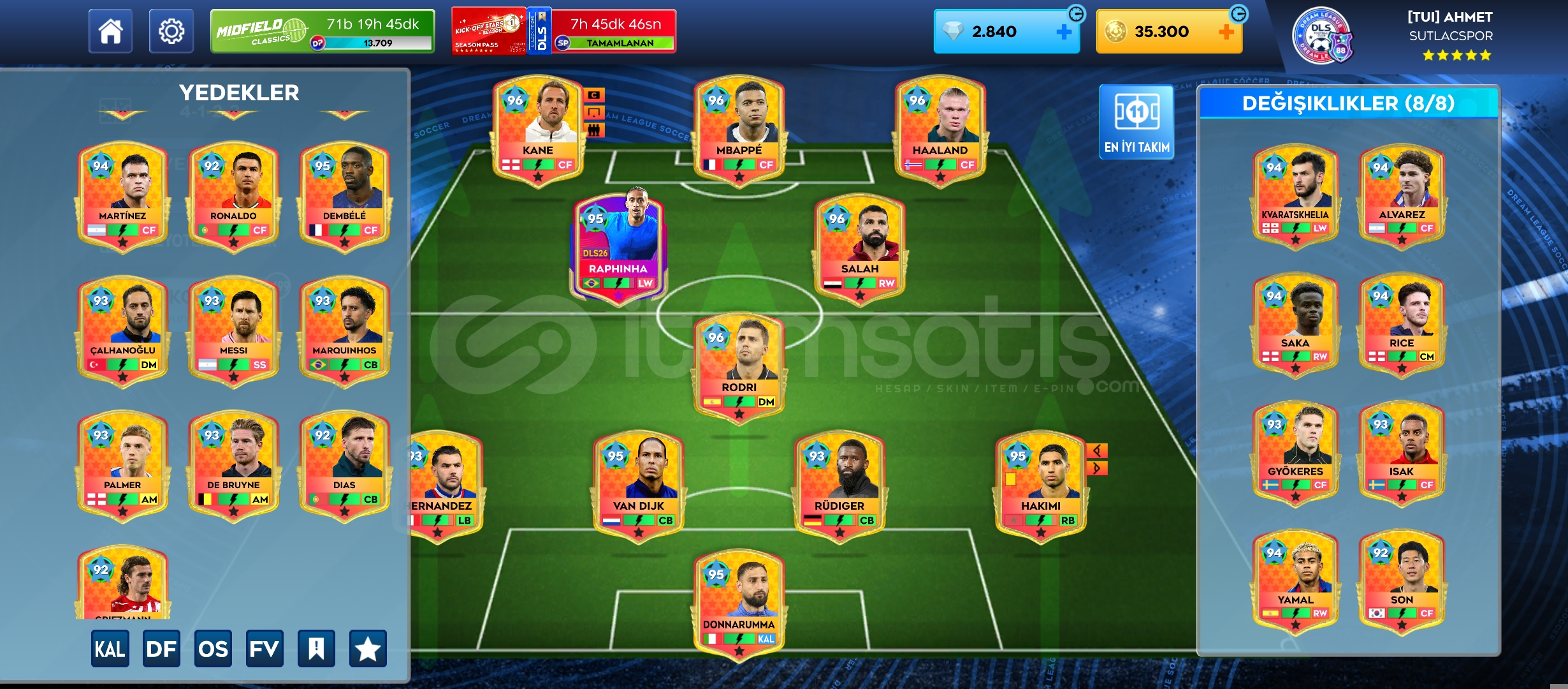 2840 elmas35.300 altın41 max oyuncuSezon pas Raphinha (Max)1202 yaygın teknik1292 yaygın kondisyonŞampiyon Arenası – 11...