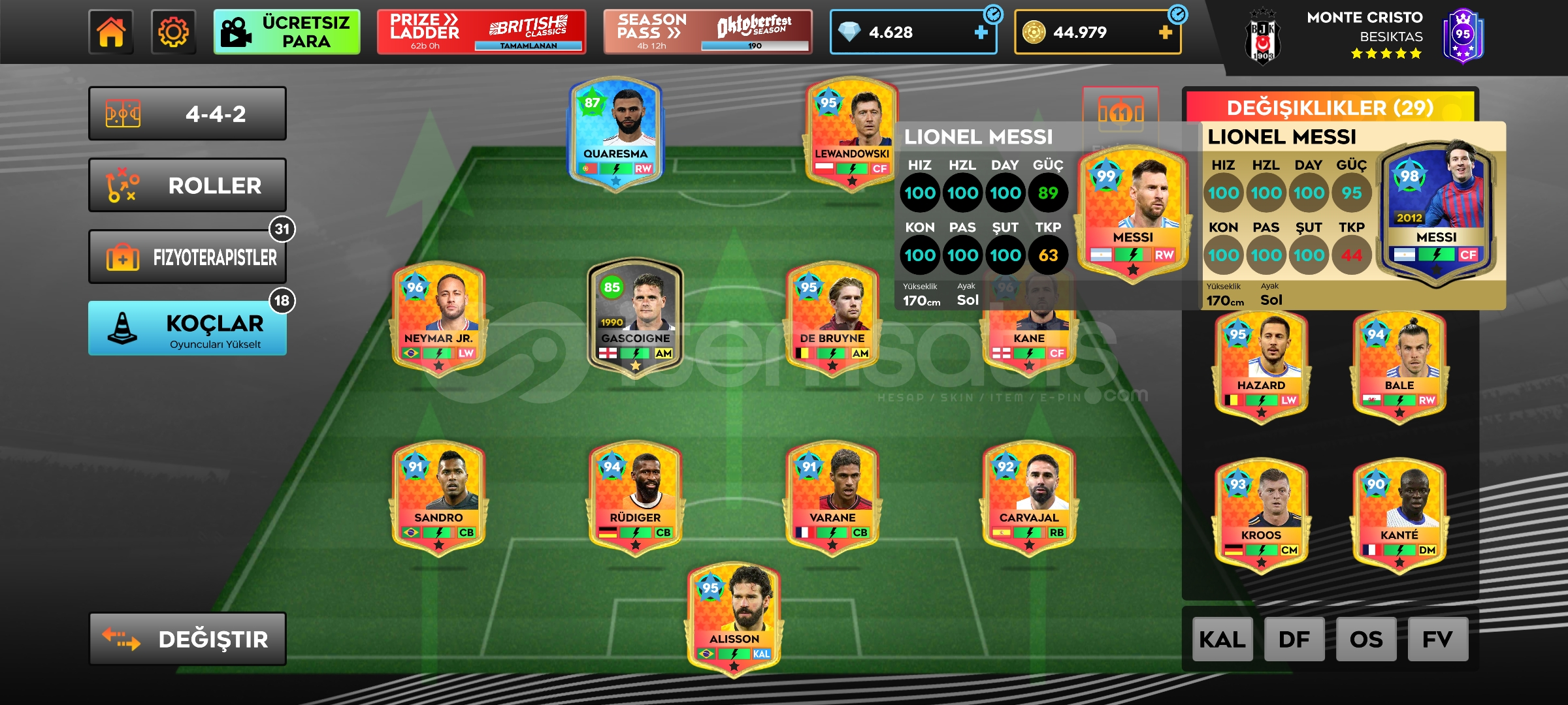 Q7 4.6K Elmas 45K Altın 99messi eski gen