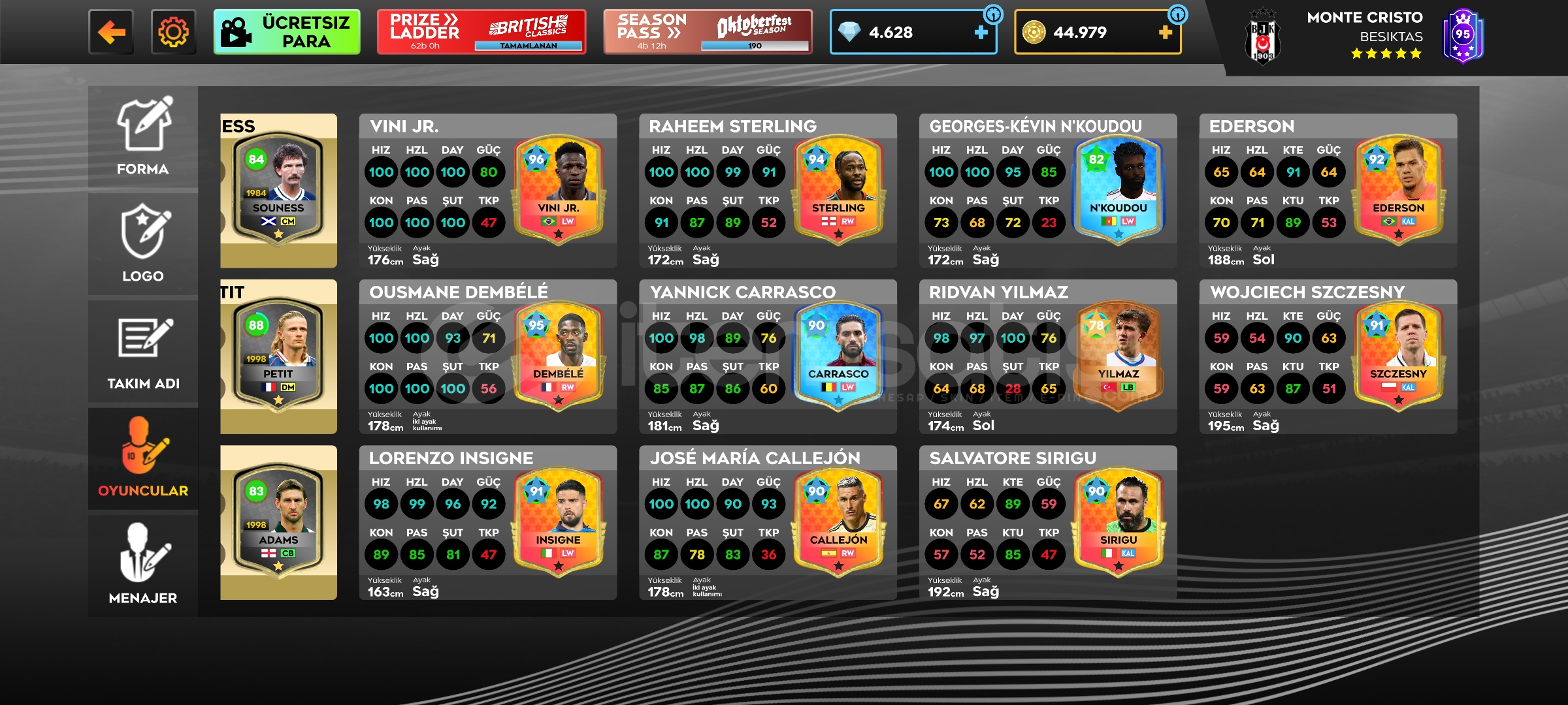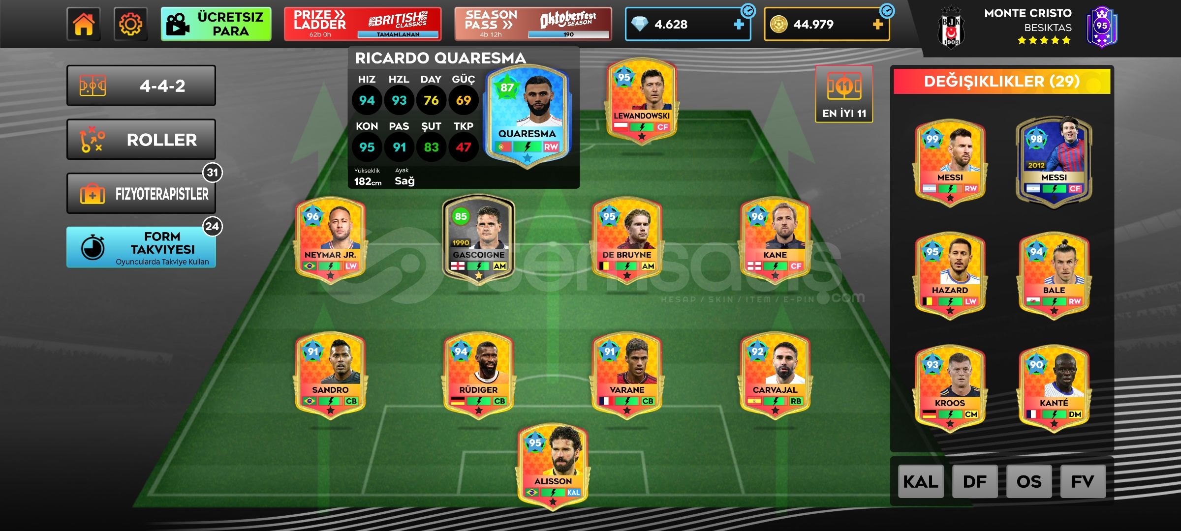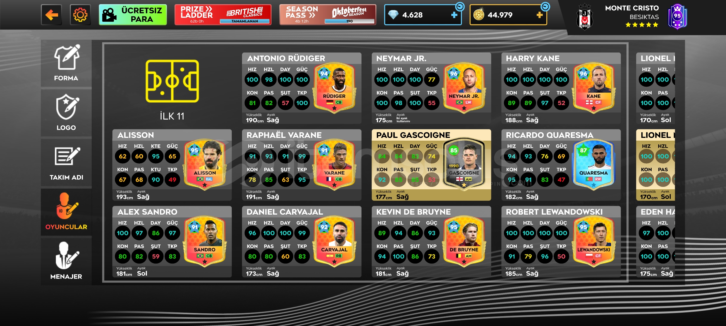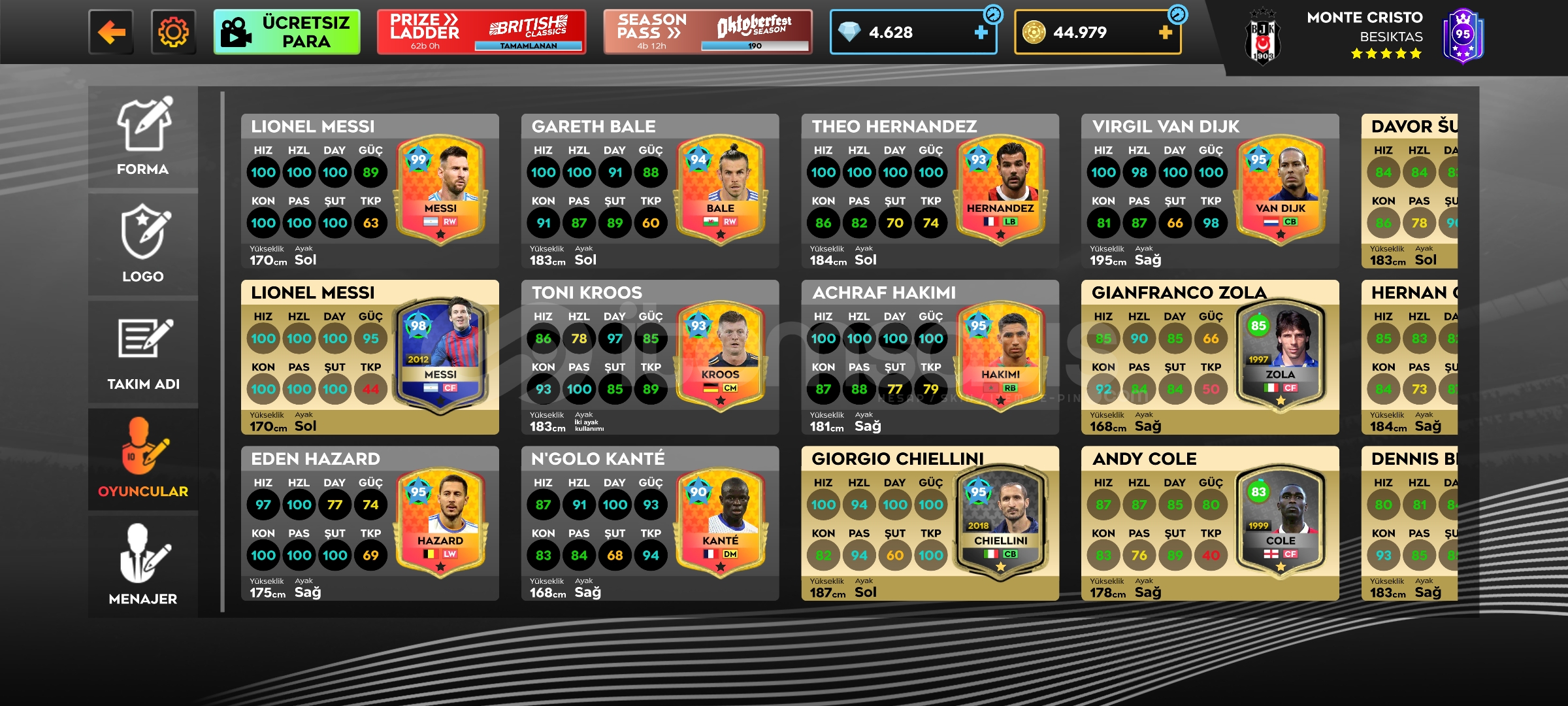 99MESSİ 96 NEYMAR BALE HAZARD GİBİ ESKİ GEN OYUNCULAR