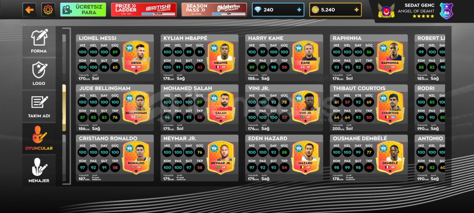 MÜKEMMEL HESAP DEĞERİNDE SATİLİK 2 RONALDO 2MESSİ VE BİRCOK ESKİGEN OYUNCU MEVCUT