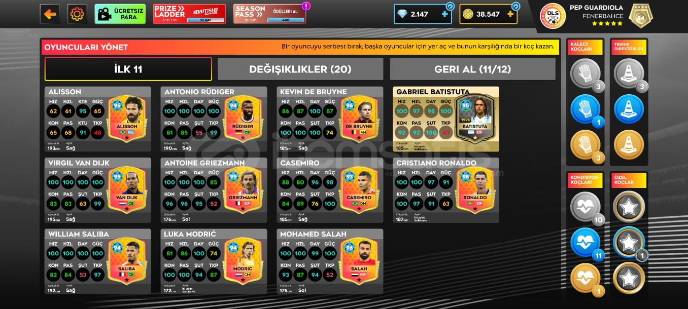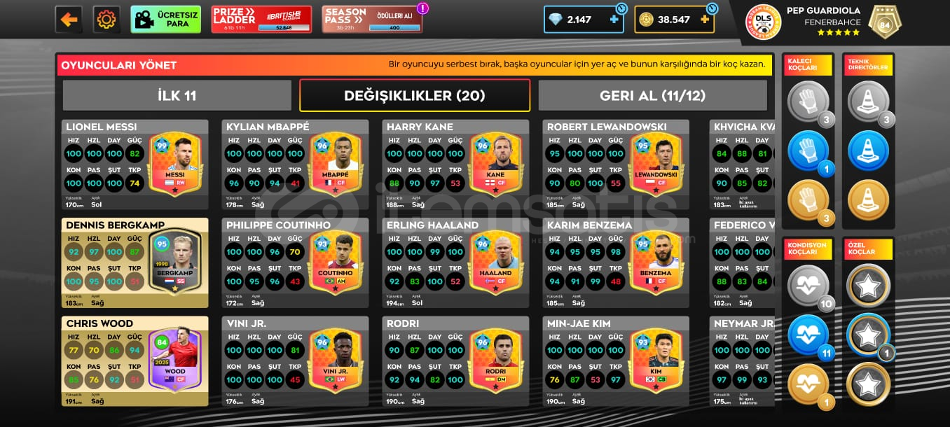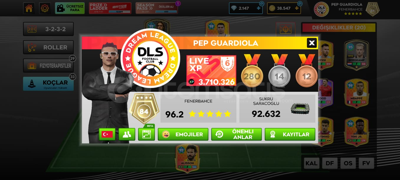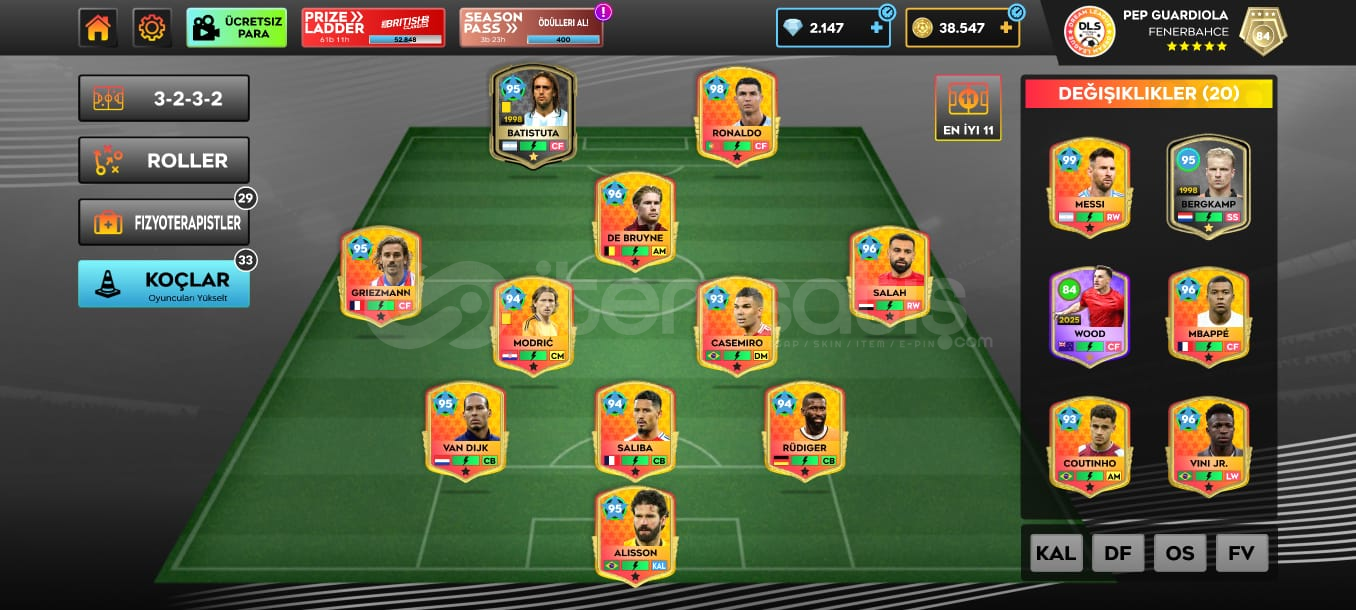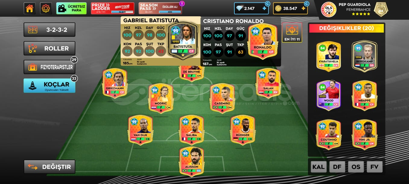 SATİLİK HARİKA DLS 25 HESABI RONALDO MESSİ 98