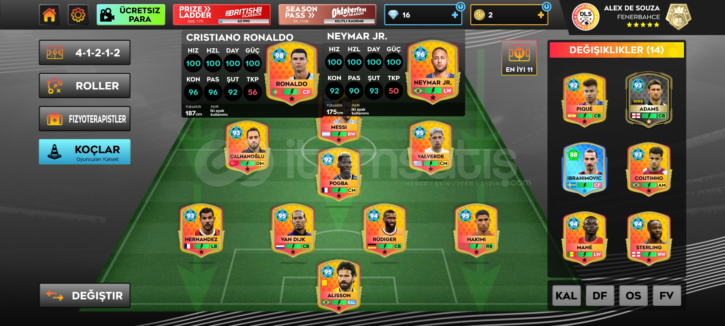 SATILIK RONALDO MESSİ NEYMARLI DLS 25 HESABI