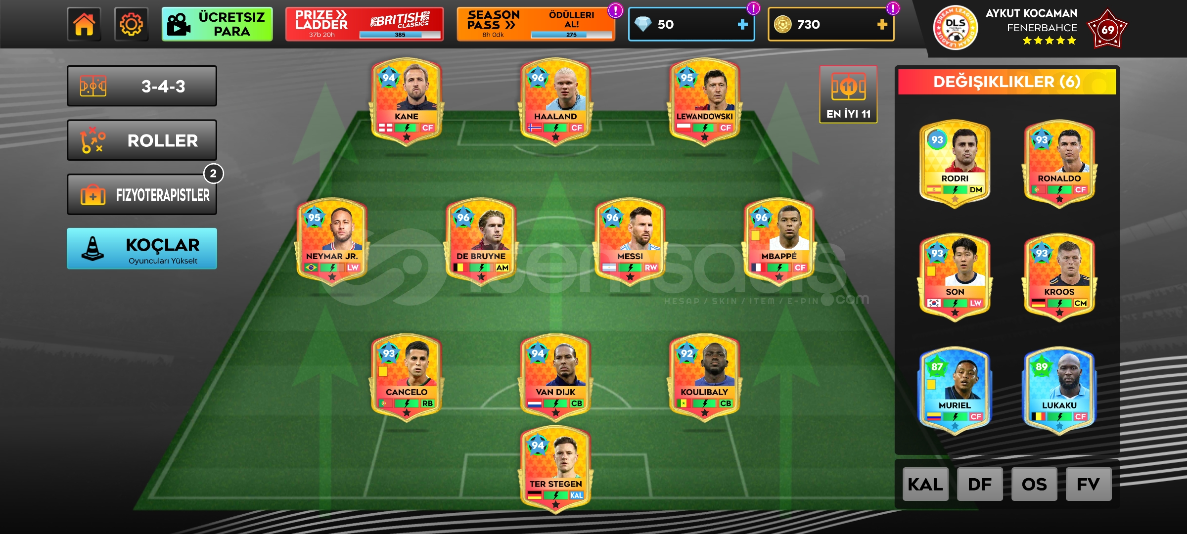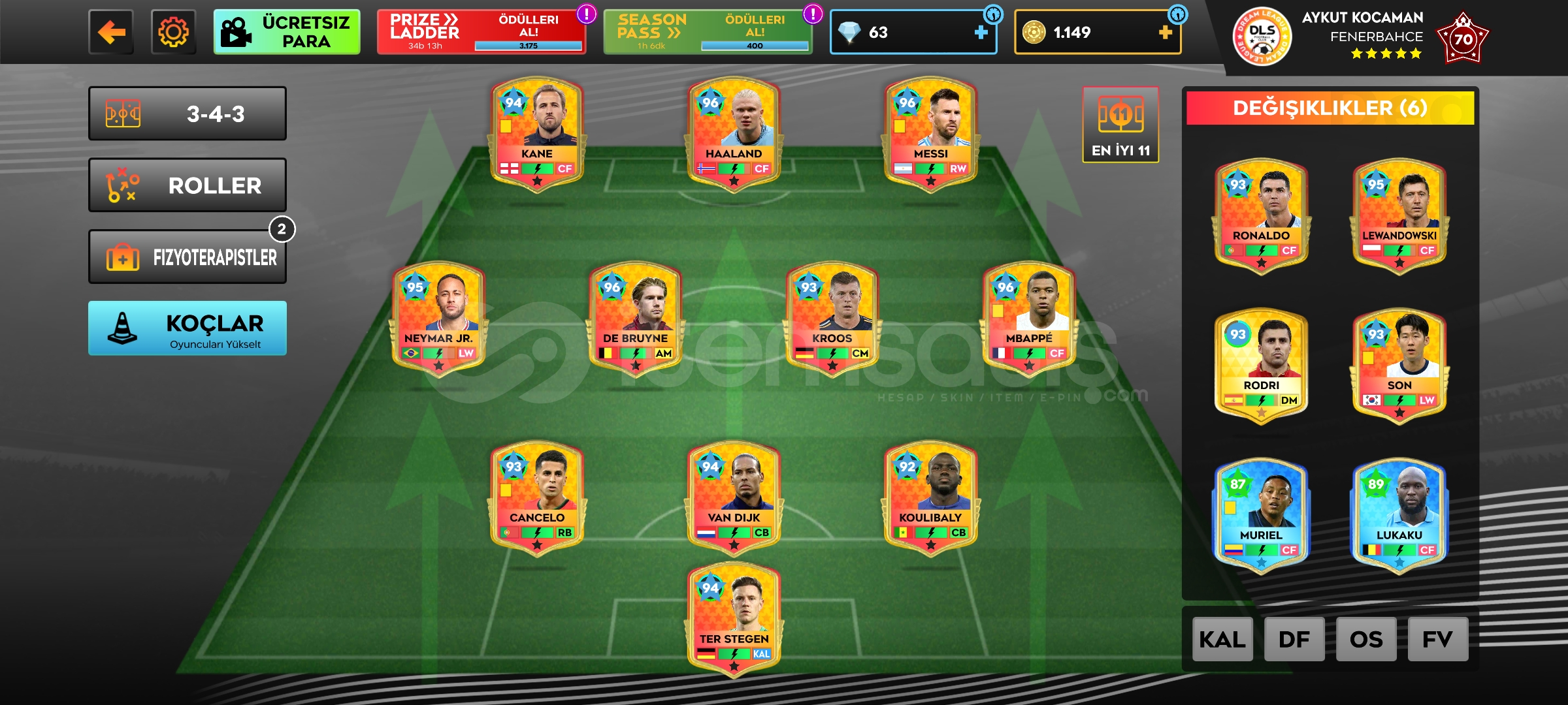 2023 senesinden beri aktif hesabım. Tüm futbolcular full güç stad full. Pazarlık yapılır.