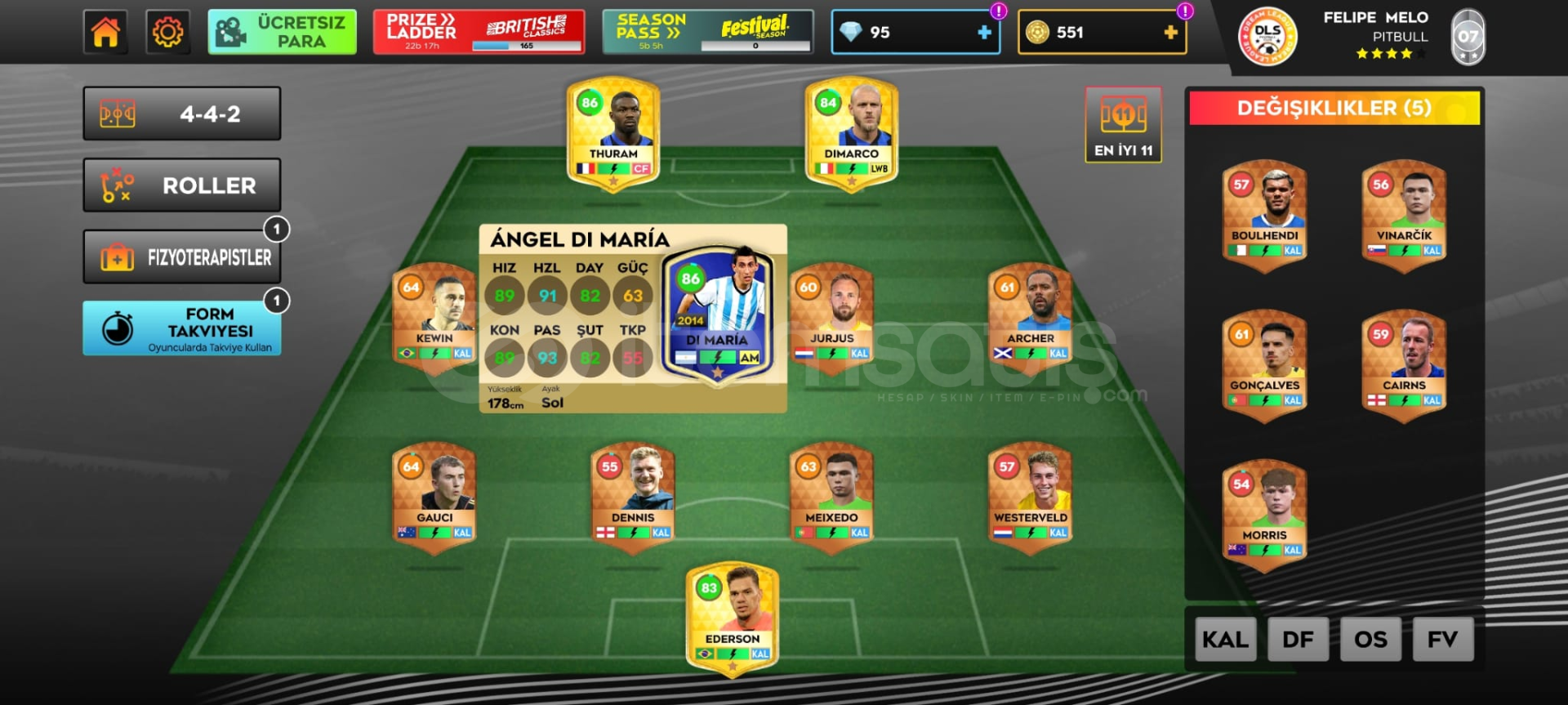 ŞAMPİYON Dİ MARİA 85 FB Lİ EDERSON 82