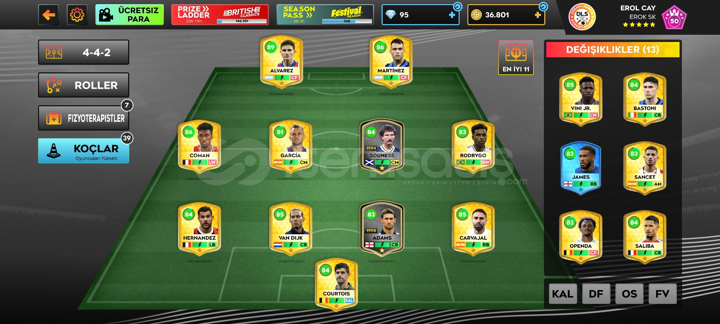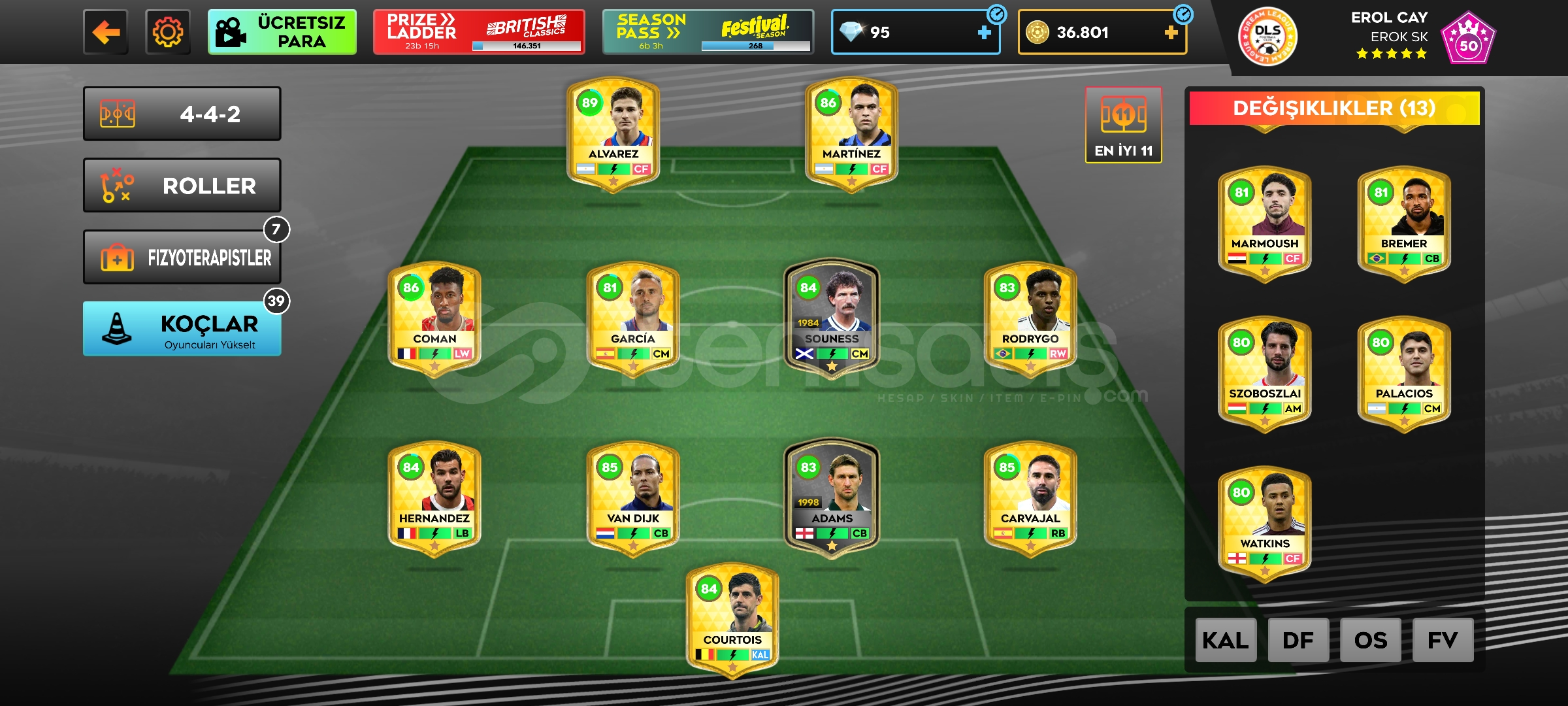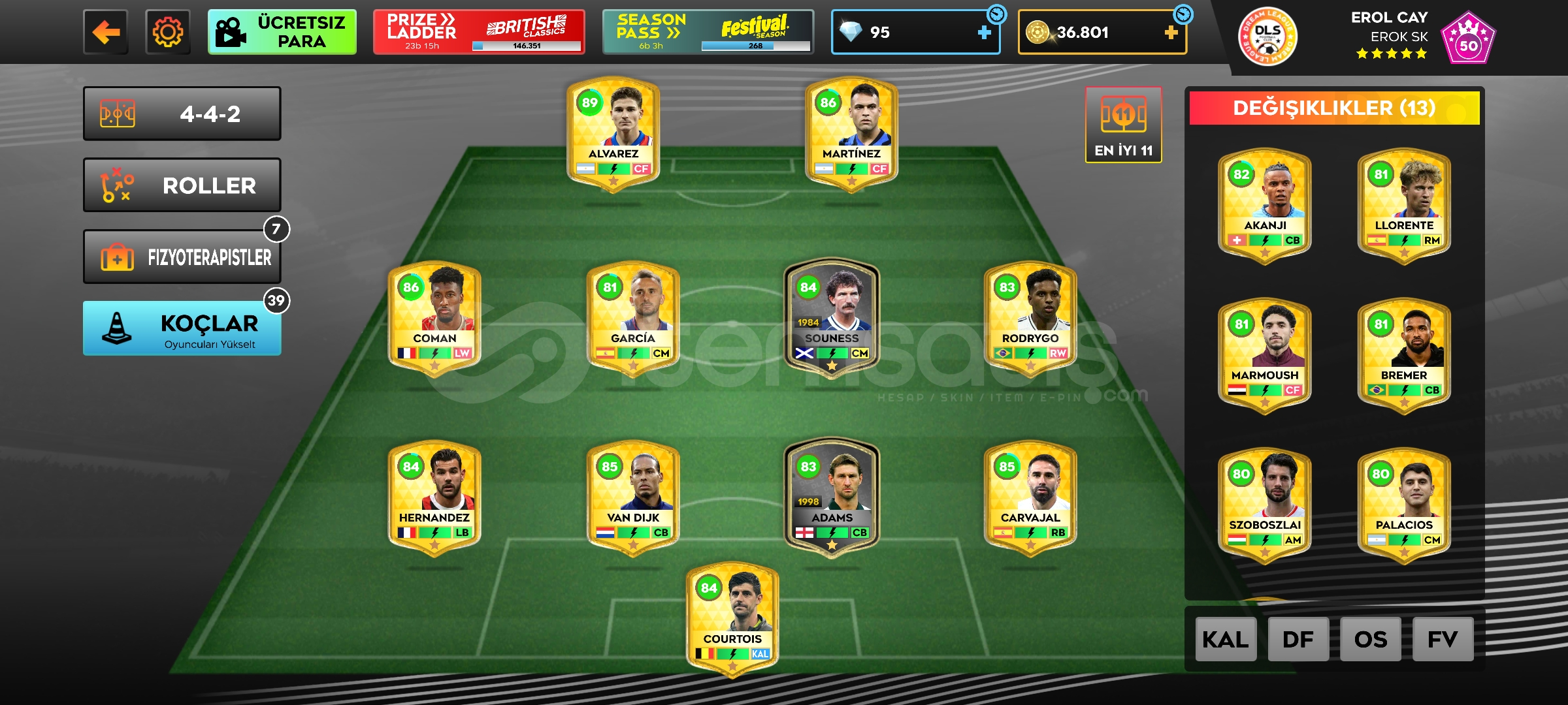 Yeni başlayanlara uygun uygun fiyatlı içinde 37k altını olan güzel bir kadrosu olan 24 tane oyuncu mevcut 2 silikon alıcısına şimdiden hayırlı olsun