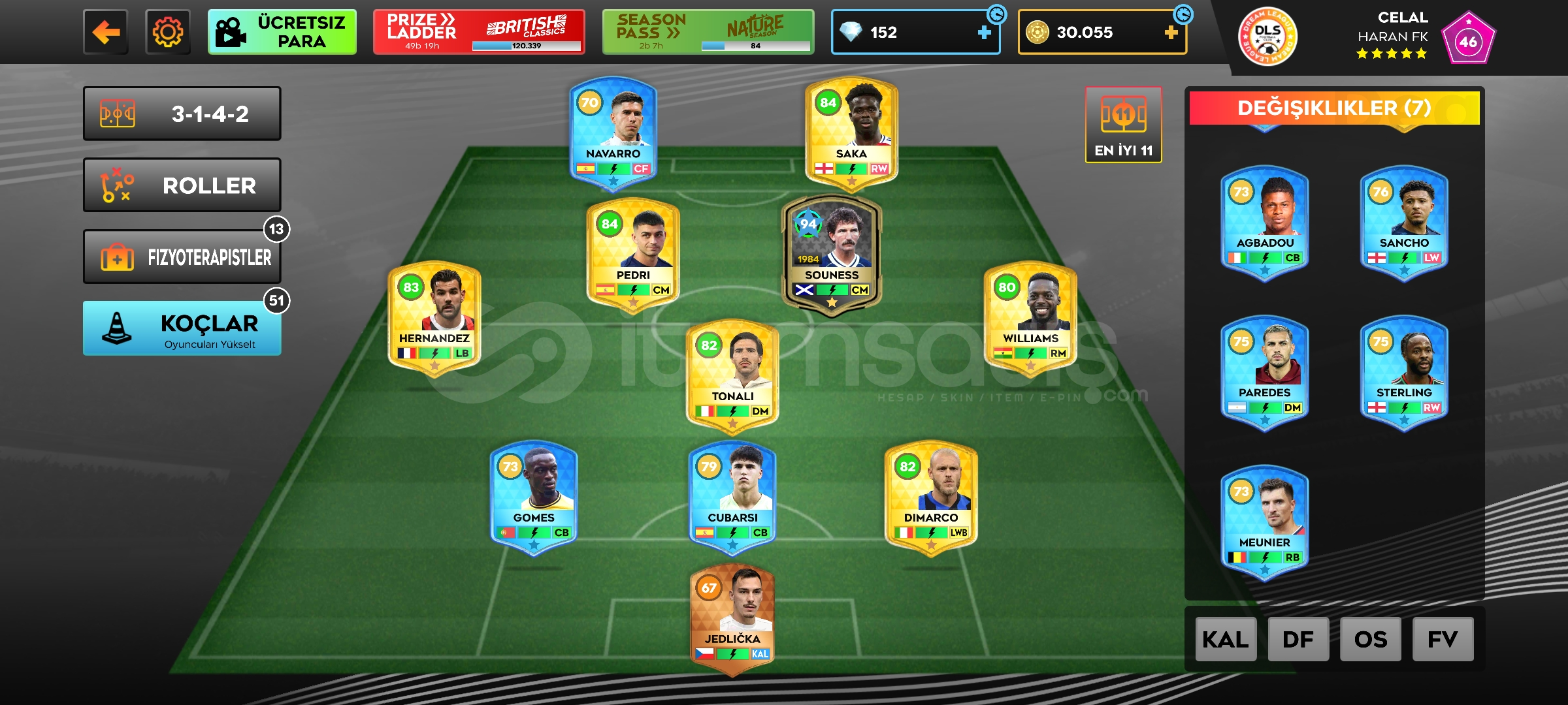 Hesabımız görüldüğü gibi efsanesi de vardır sarı kartları da mevcuttur 32k para da vardır