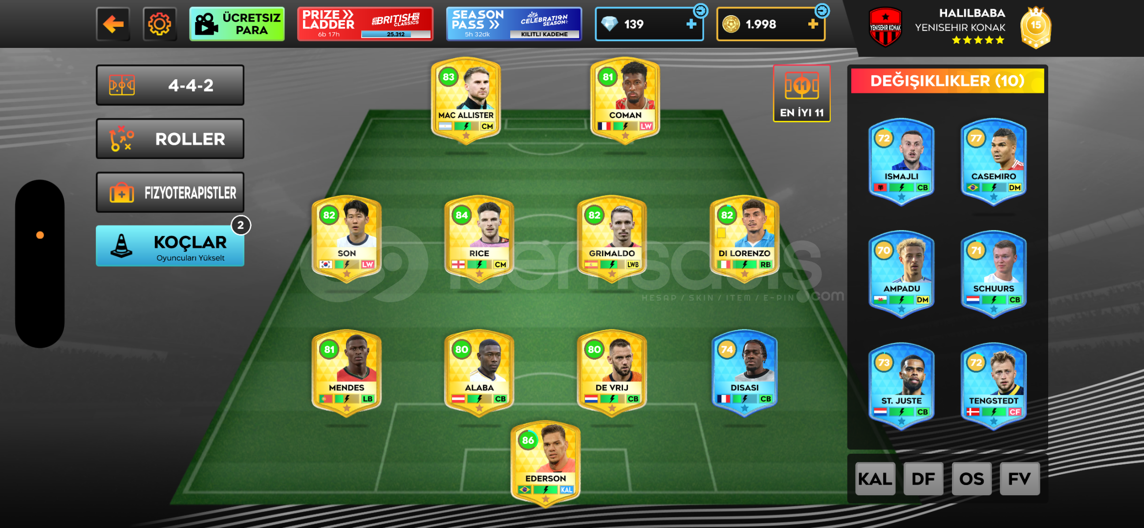 Ucuz hesap+260 elmas 5000 para