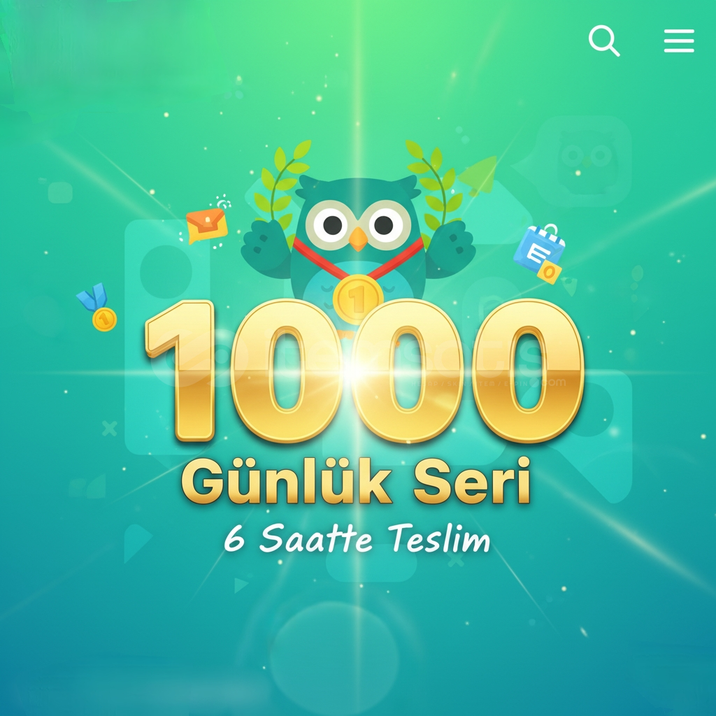 Tam 1000 günlük seri hesabınıza eklenir. ⚡ Yaklaşık 6 saat içinde 1000seri kendi hesabınızda.💬 Profil süsü için yada arkadaşa hava atmak için, yada prestij göstergesi. İlan Görselinde Kanıt Vardır. 🔥 Kaçırma! Bu kadar yüksek seri bukadar kısa zamanda çok nadir bulunur.İlanı satın aldıktan sonra, bana duolingo hesabın...