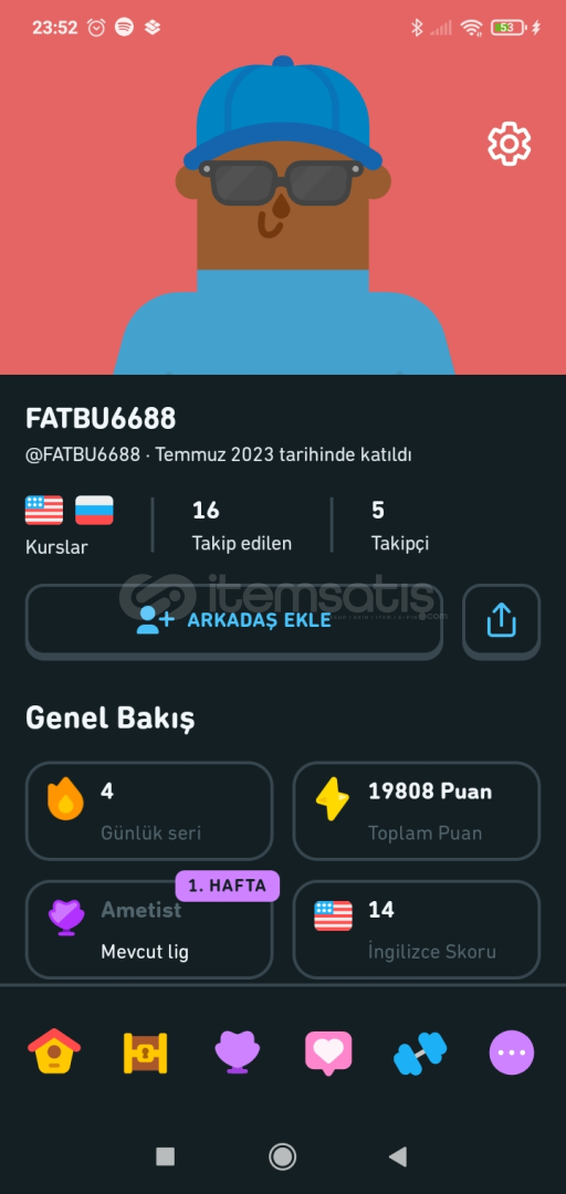 2023.07 tarihli hesap2.kısım 15. Ünite ye gelmiş hesap20000 puanlı hesapSüperi beleş aldım sınırsız falan değil yani 4 adet rozet bulunmakta Hiç hesaba para yatırılmadı tamamen benim kendi emegimle kastım kasmayada devam edlyorumPara kazanmak için satıyorum Alıcısına şimdiden hayırlı olsun
