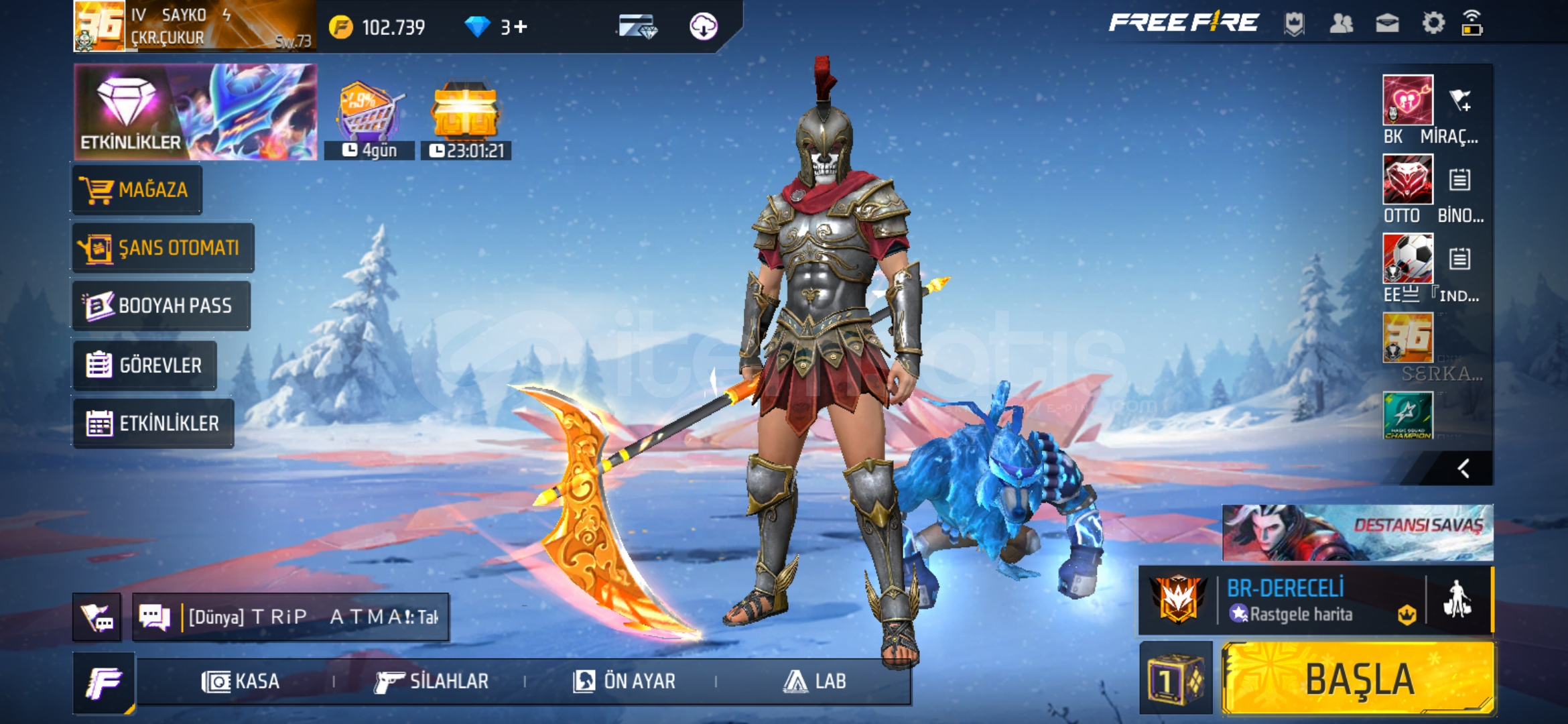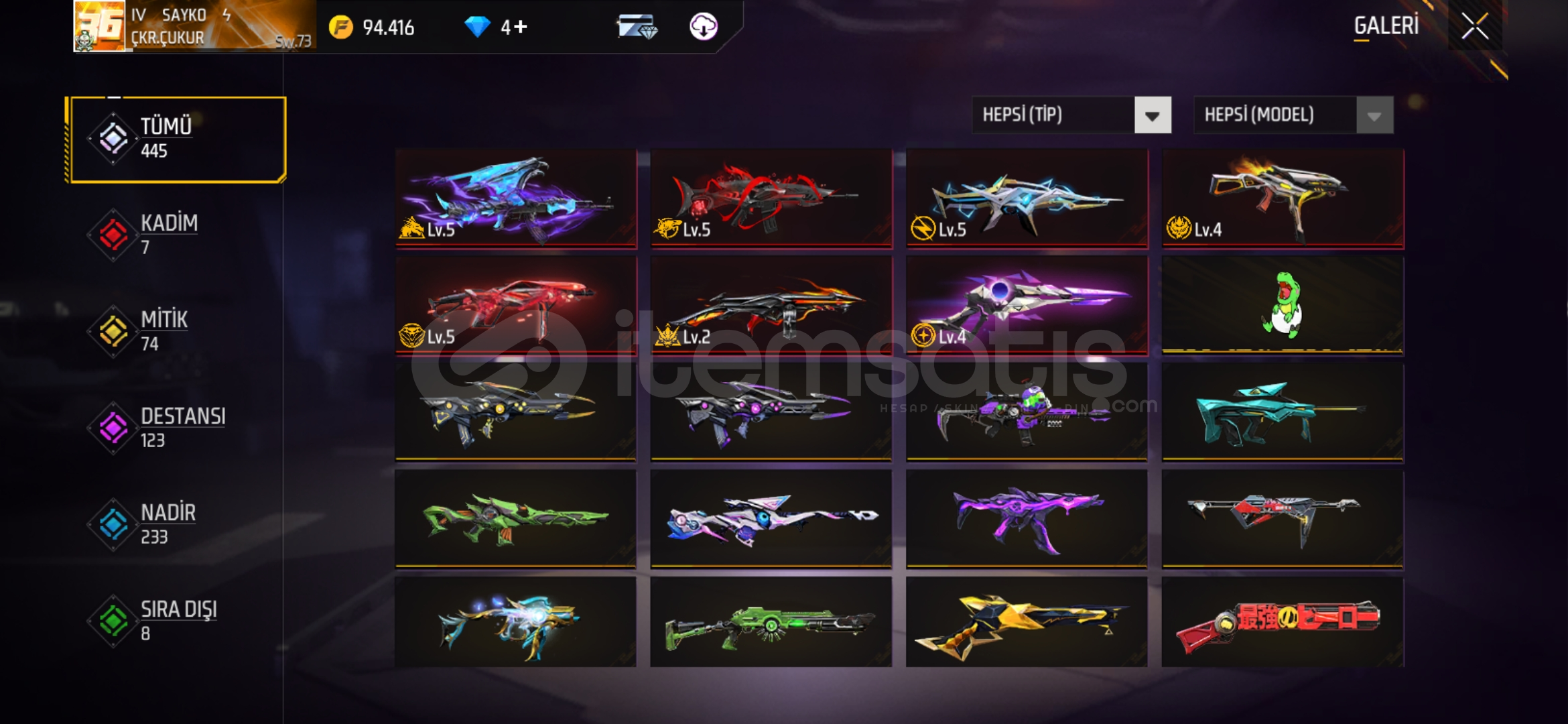 5 yaşında hesapFazlasıyla iyi silahlar var7 tane evo var mavi çıplak üstBir sürü elit pas açıkBa...