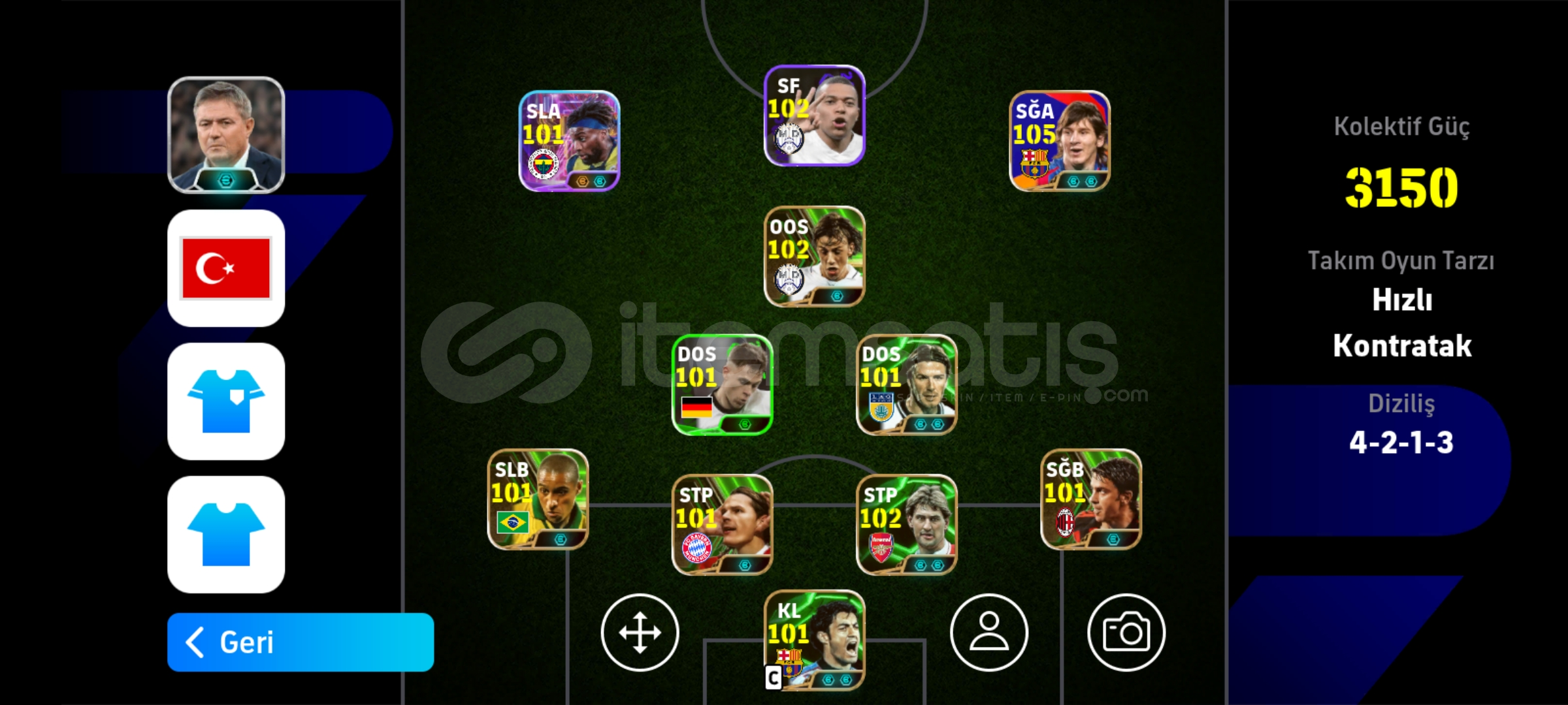 Beyler hesap fiyatına göre dolu doludur superlig kadrosu azda olsa vardır sağlam oyuncular vardır 2 özel menejer vardır Android Google play kayıptır 1 yıldır ios tek bağ konami id verilir sonuna kadar kefilim hiç bı sıkıntı çıkmaz yeni alıcına şimdiden hayırlı olsun 5 dk içerisinde teslimat yapılır.