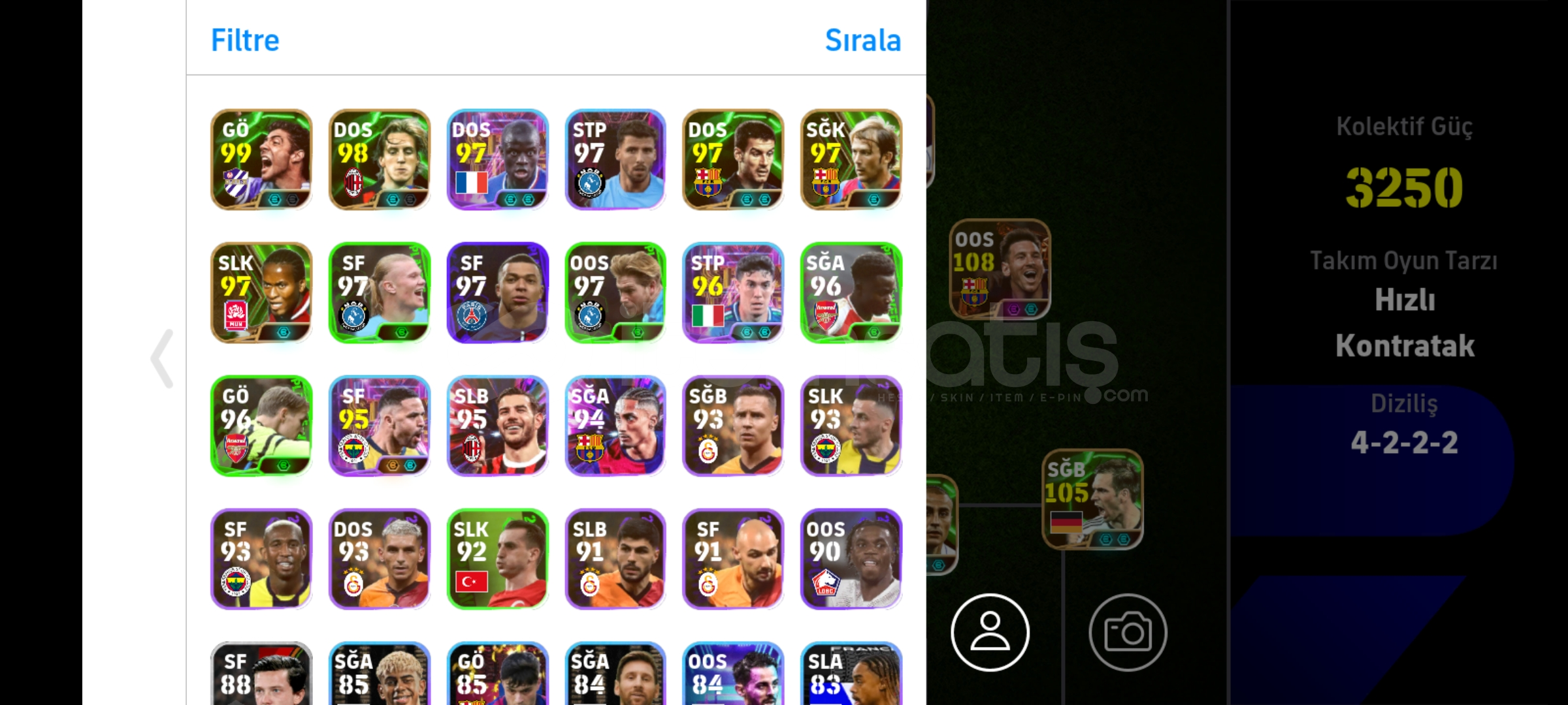 Özel kart olarka 108 messi ,107 bale ve 105 neymar var ve daha bir çok epic var ayrıca 2 tanede teknik direktör var ilgilenen olursa yazsın indirime gidilebilir