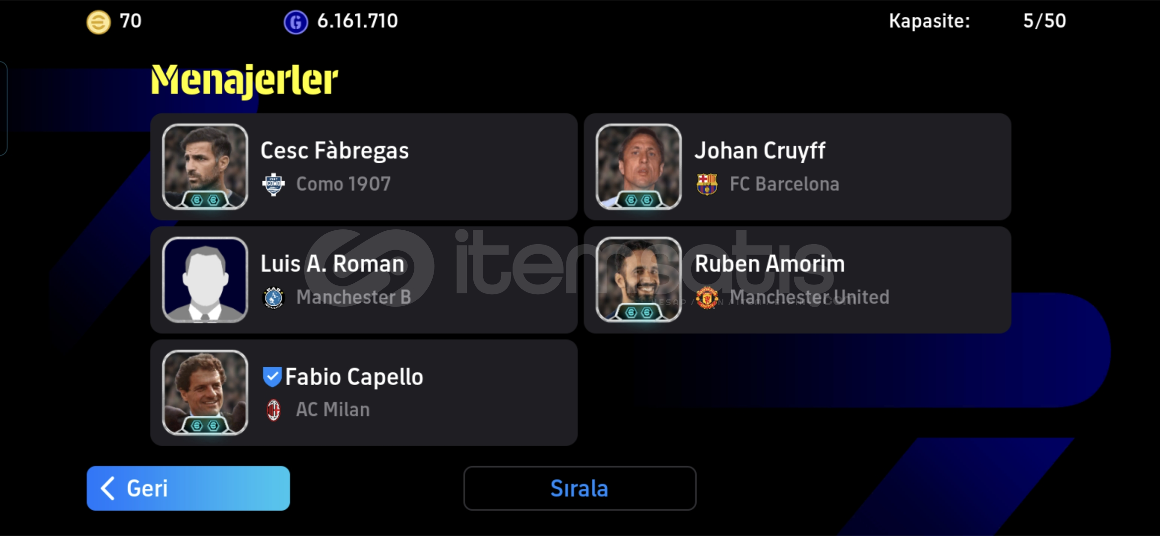 Tek bağEksi MC yok daha uygunu da yok6m gp106 salah106 cannavaro105 BATİSTUTA104 SCHOLES104 villa103 van buyten vsvsSağ bek savunmacı sağlam4 özel menajer.