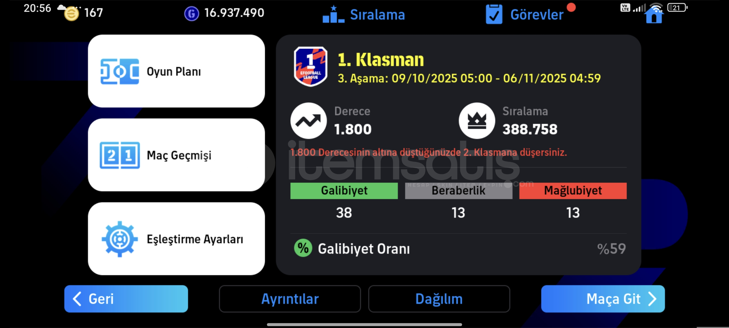 Hesap 3 kez 1 klasman olmuştur eksi MC yokAndroid iOS tek bağ
