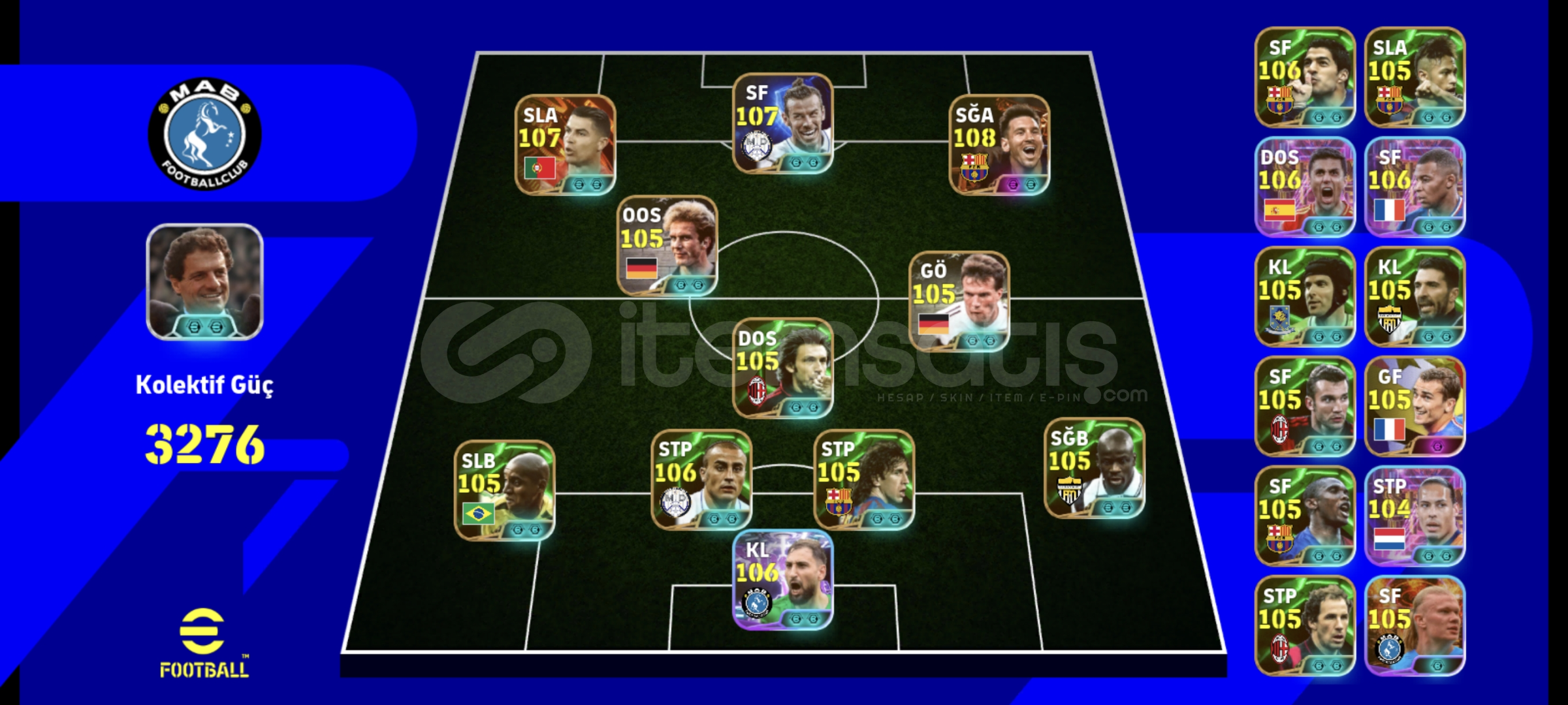 Ozellikler:3276 reyting — üst lig seviyesiNadir formalar100 epic kart — temiz ve güçlü koleksiyonKadroda Mbapp&eacut...