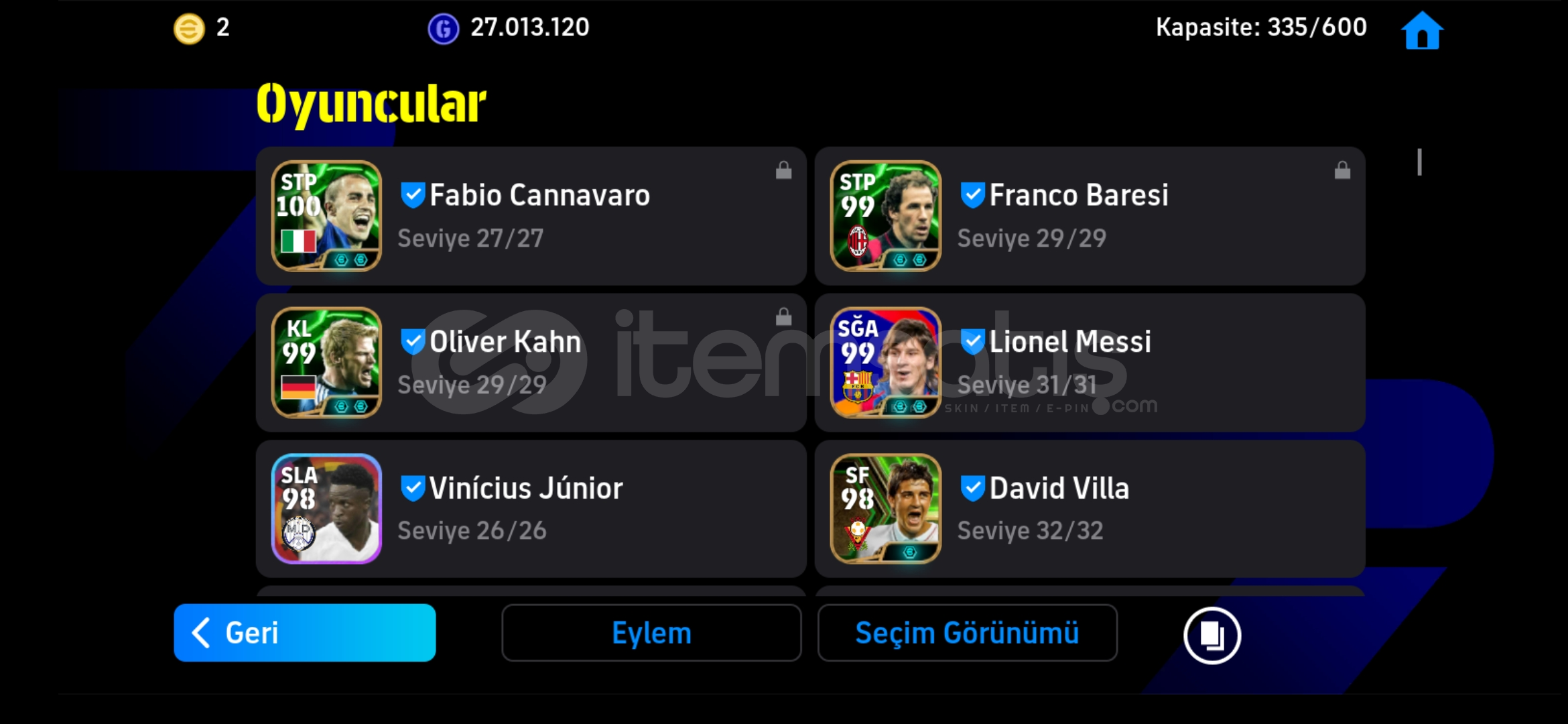 Hesap dokular dolusu nadir çok var ve 3 epik kartı vardır hesabın İlk 11 i görüldüğü gibidir rezerv dopdolu 330 oyuncu vardır alana şimdiden hayırlı olsun