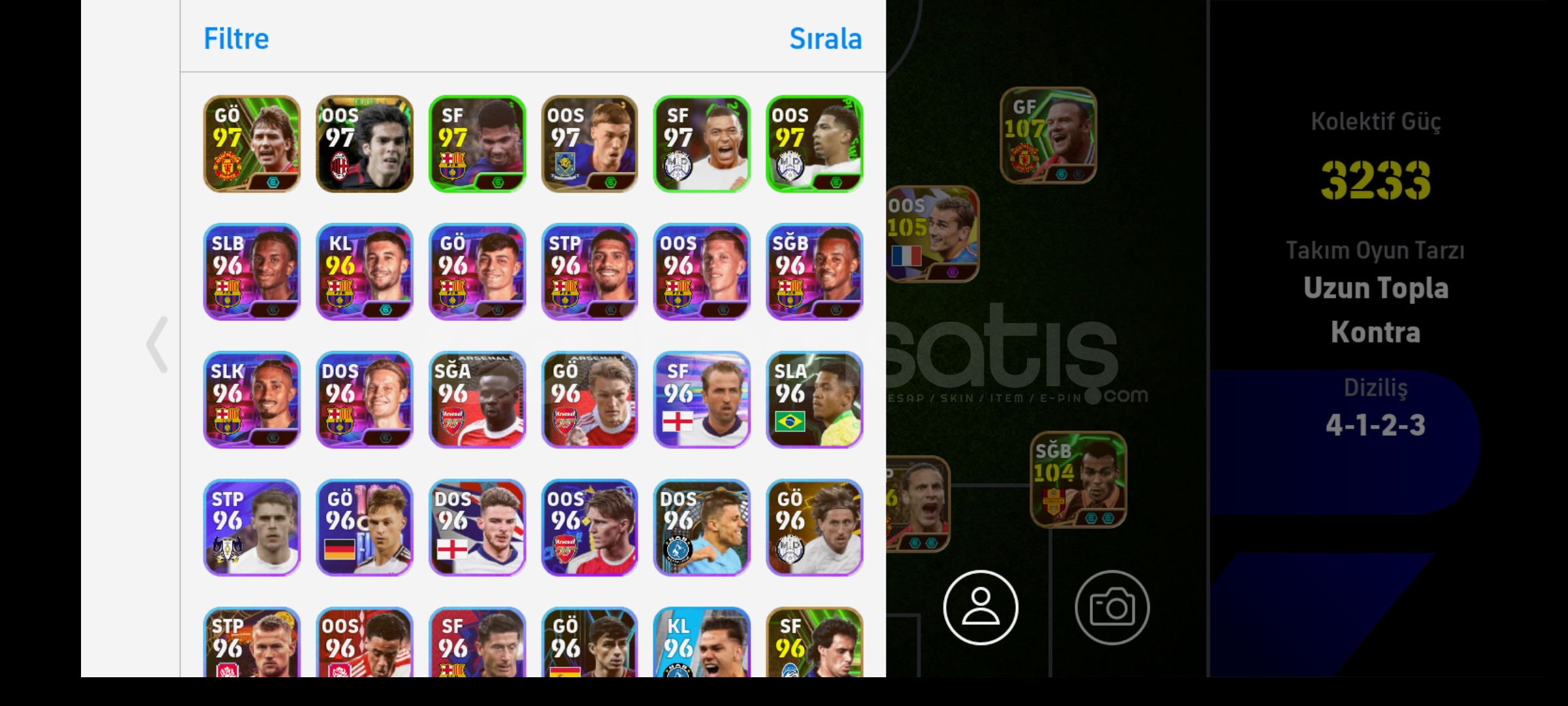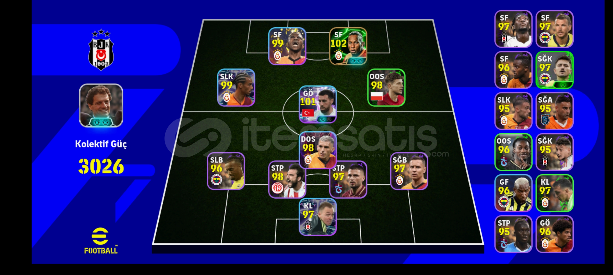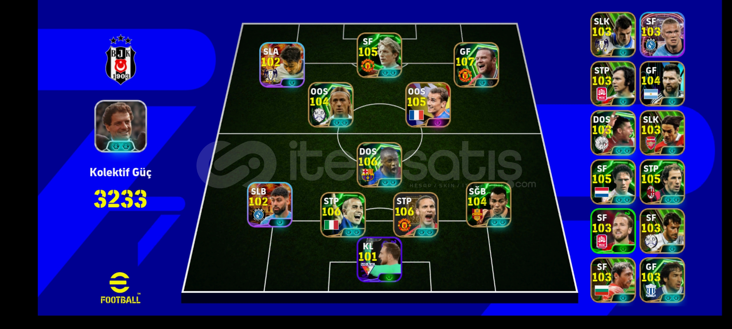 - Hesap Tek bağ dır (Konami id)- Hesap ta 6 tane güçlendiricili vardır- Rezerv doludur - Hesap ta Barcelona, İNGİLTERE ve Fransa paketi alınmıştır- 102 bombacı son gibi nadir kartlar vardır - Harika bi süper lig kadrosu vardır