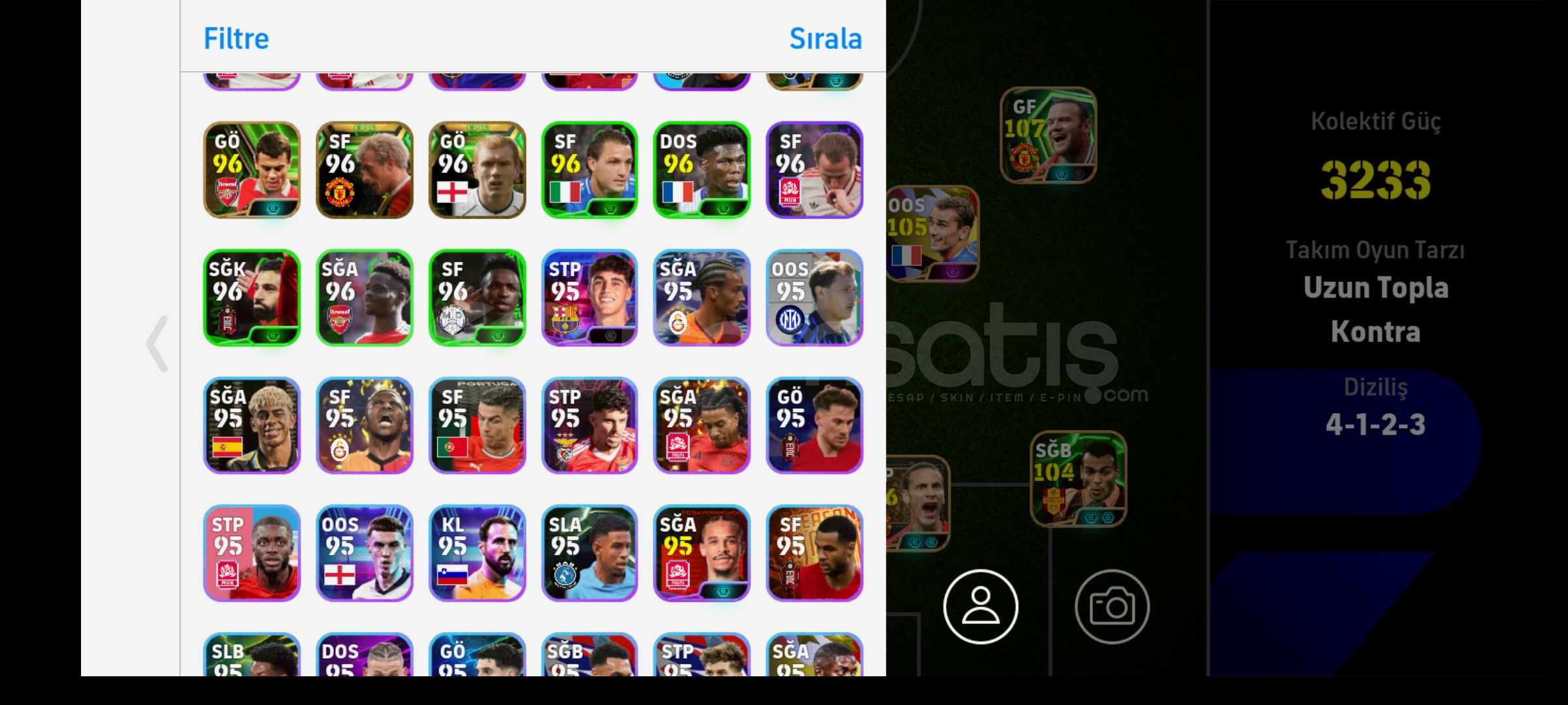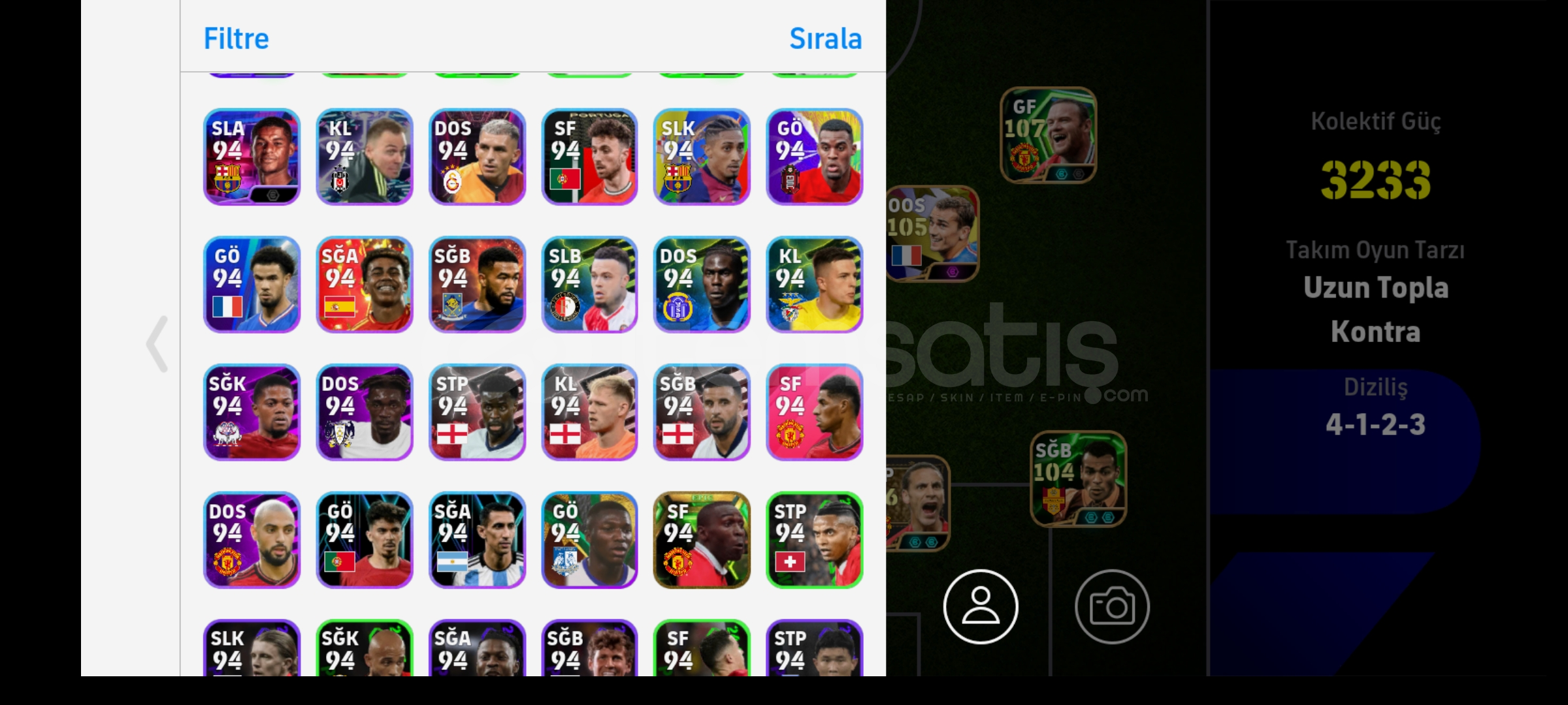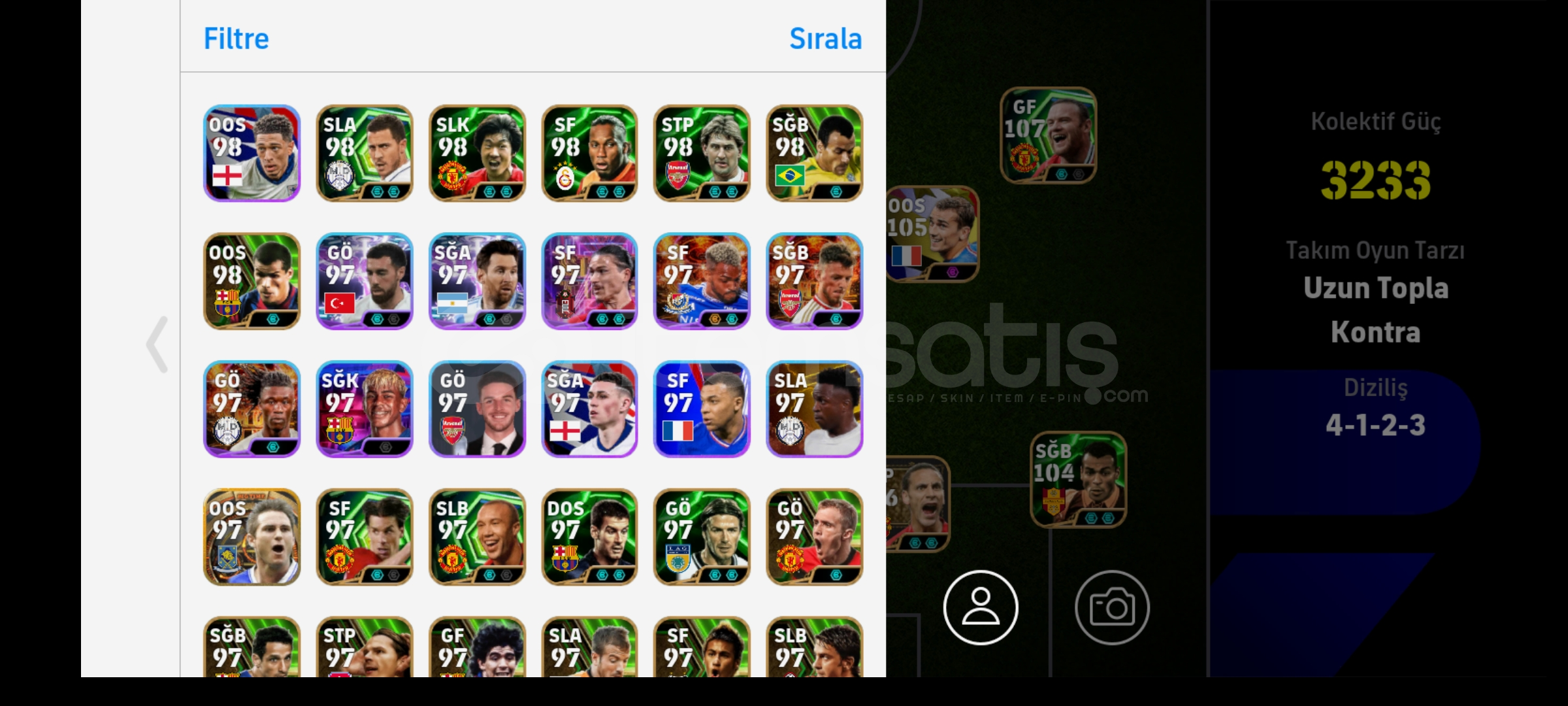 - Hesap Tek bağ dır (Konami id)- Hesap ta 6 tane güçlendiricili vardır- Rezerv doludur - Hesap ta Barcelona, İNGİLTERE ve Fransa paketi alınmıştır- 102 bombacı son gibi nadir kartlar vardır - Harika bi süper lig kadrosu vardır