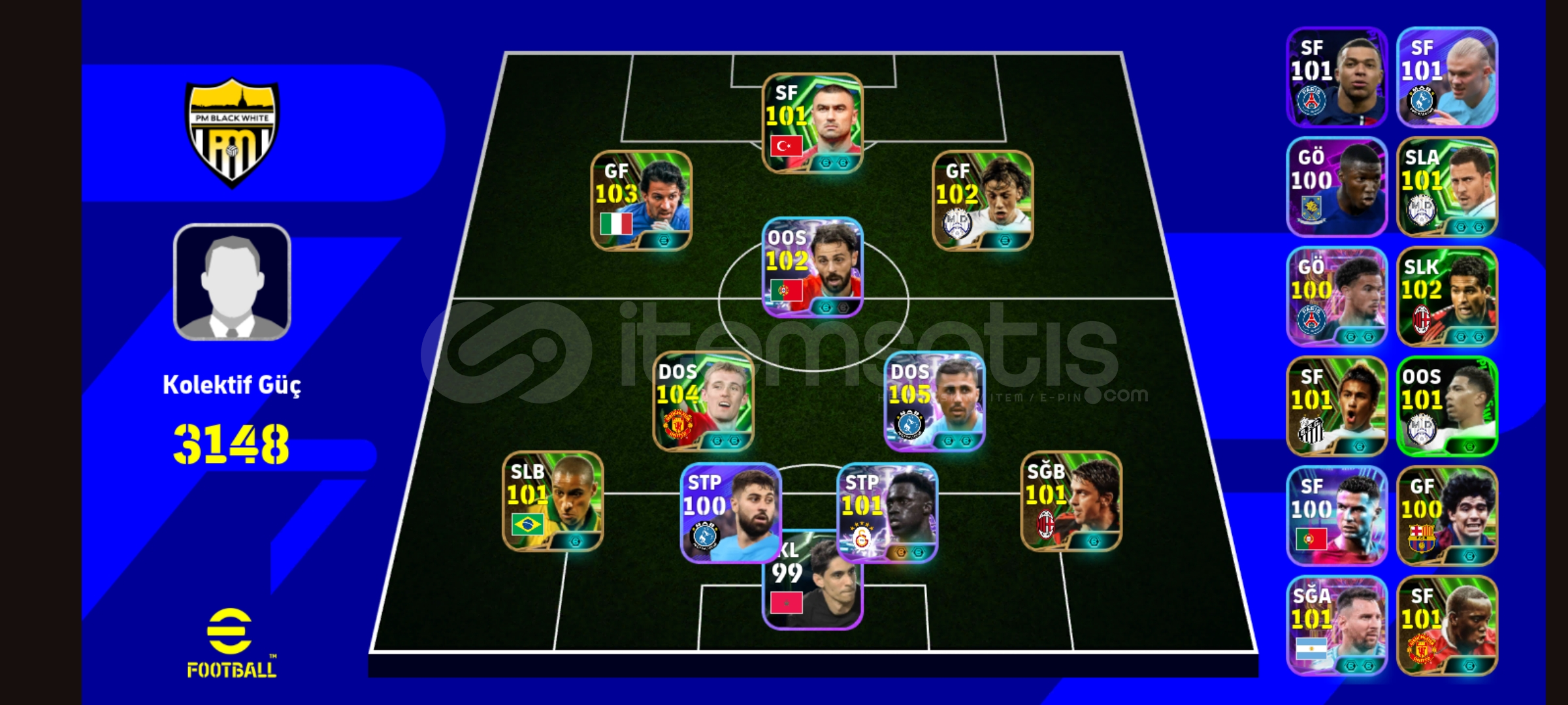 Hesap Tek Bağlıdır – Konami ID ve Mail Değişikliği YapılabilirHesapta üst düzey oyuncular bulunmaktadır.Oyunu bilmeyenler için belirtmek isterim: Del Piero, oyunun en iyi bombacılarından biridir.Alan kişiye şimdiden hayırlı olsunEksi MC Yoktur!!!