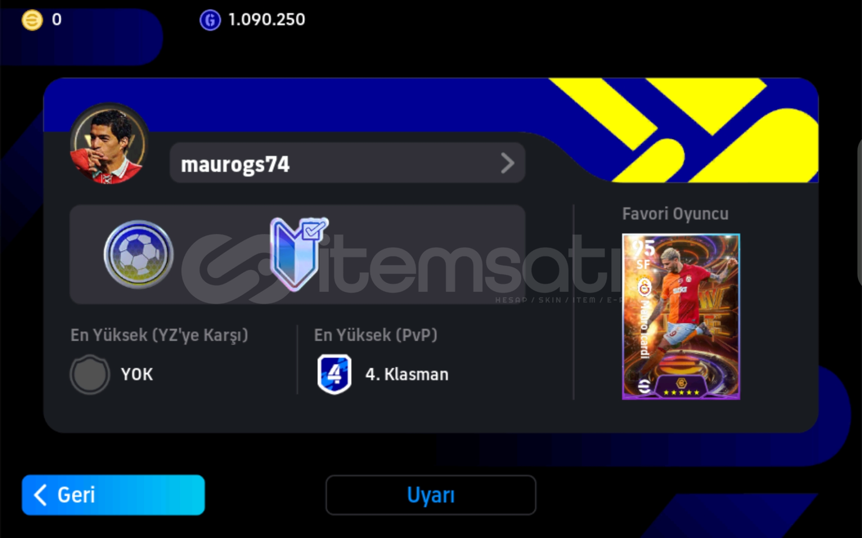 Arkadaşlar hesap nadirdir daha ne olsun teknik direktörüde sağlam oyunun en iyi teknik direktörü zaten bol rezervi hesap alana hayırlı olsunEğer kadronuzda 22 tane süperlig oyuncusu varsa icardi 103 olurPazarlık yok malesef