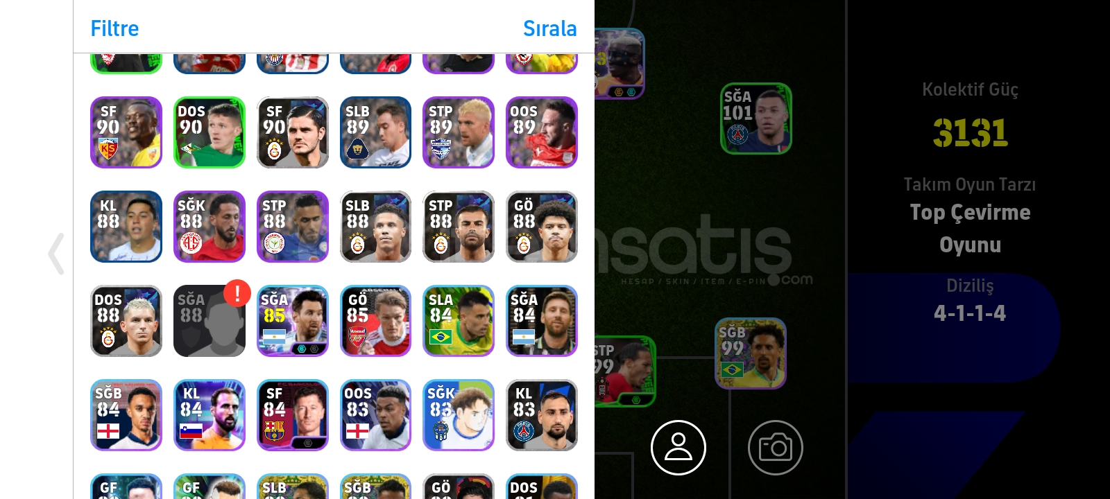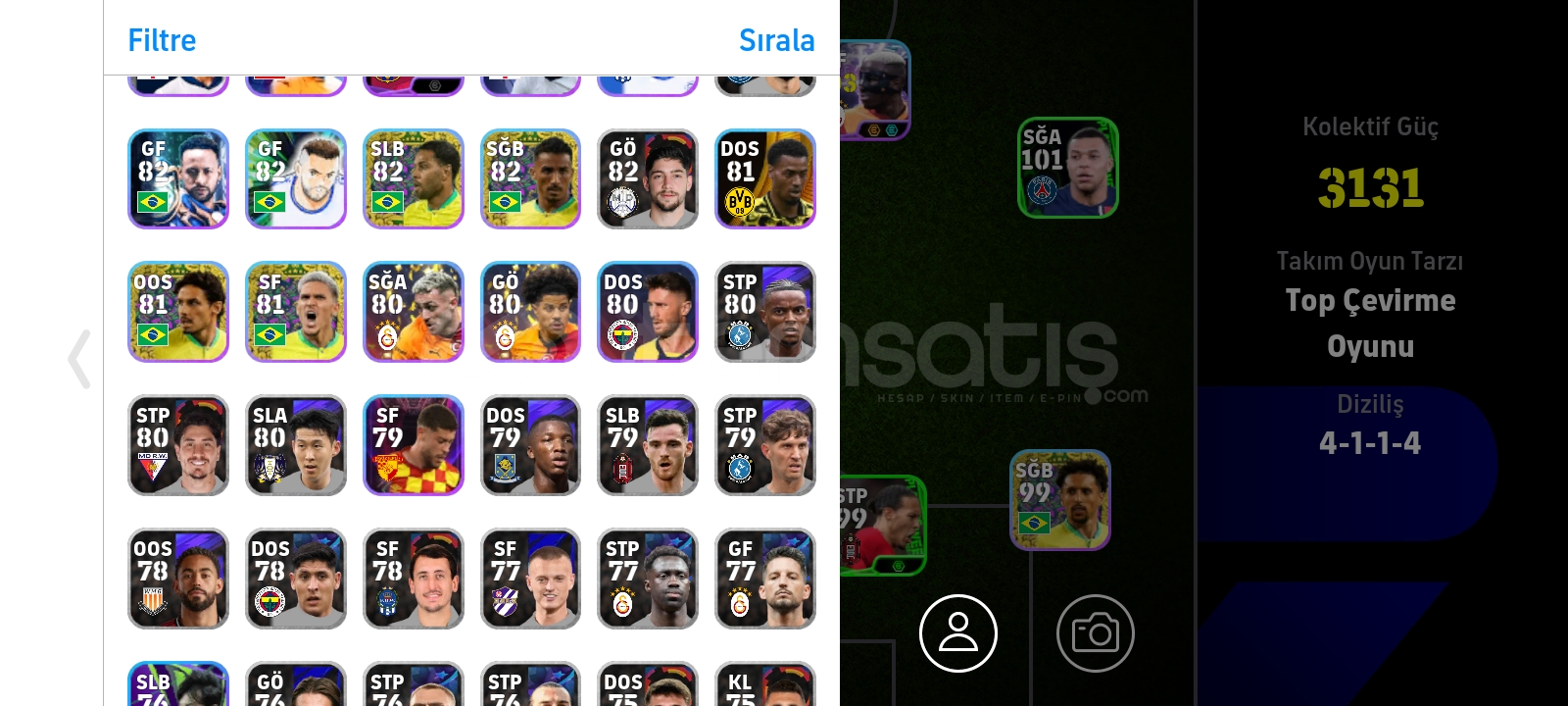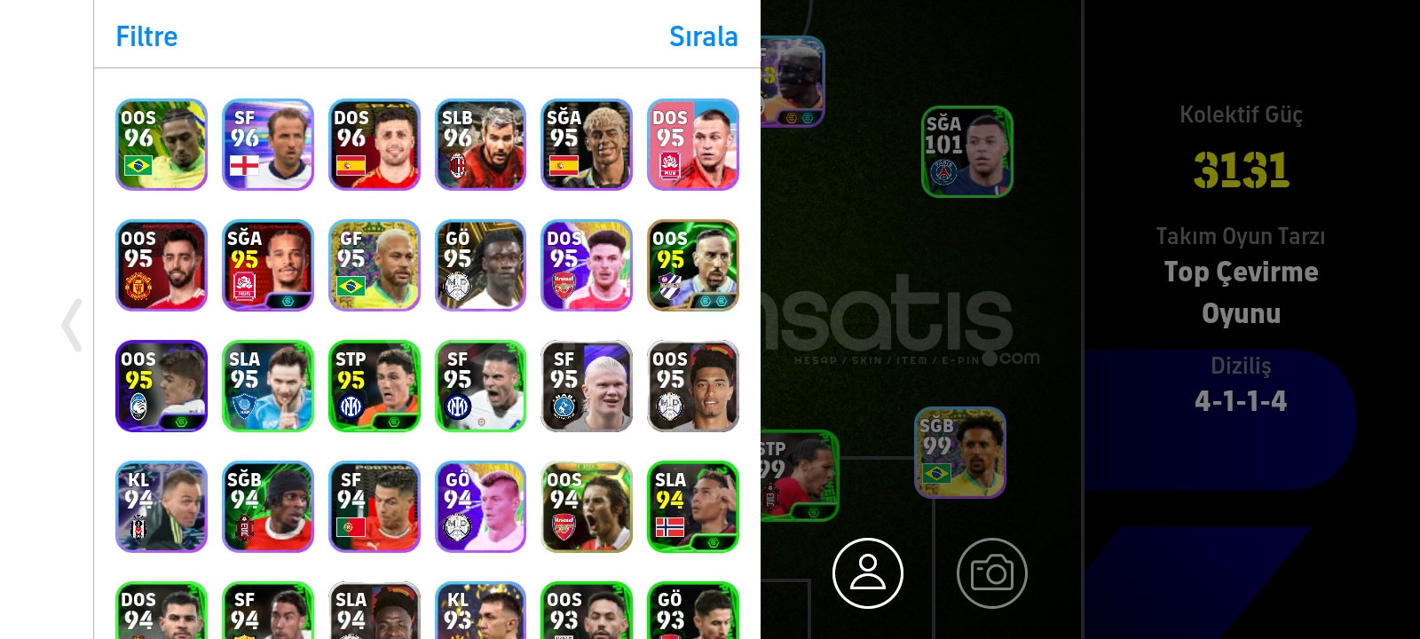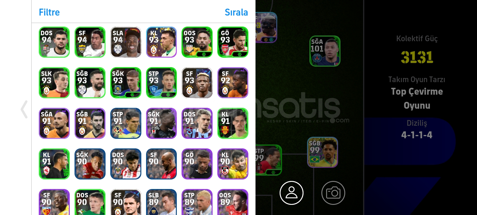 Arkadaşlar hesap temiz tek bağdır 103 osimhen 104 cruyff 100 zico 105 kahn gibi ve bolca eski oyuncular ve rezerv bulunmaktadir 99 kross givi eski oyuncular vardir cok sansli hesaptir alana hayırlı olsun