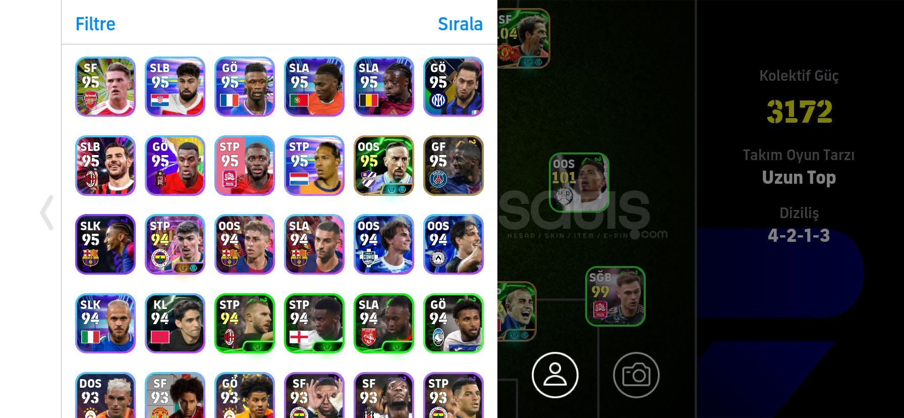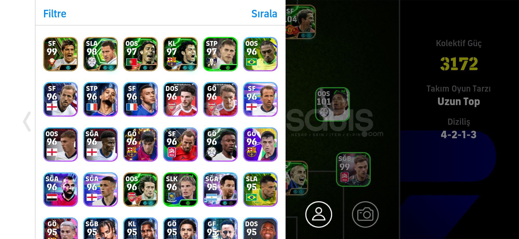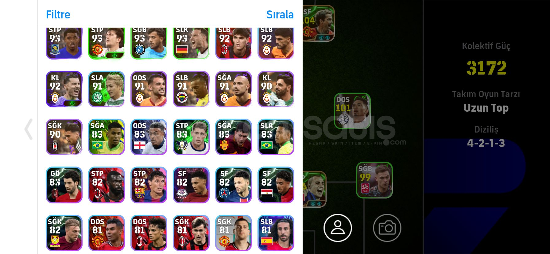 • bu hesabı alan pişman olmaz 3330kg lik hesap yendim bu kadro ile. Zaten david villayı bilmiyenler kesinlikle youtube'dan 'Bombacı David Villa' izlesin. kendisi oyunun net en iyi kartlarından biri.