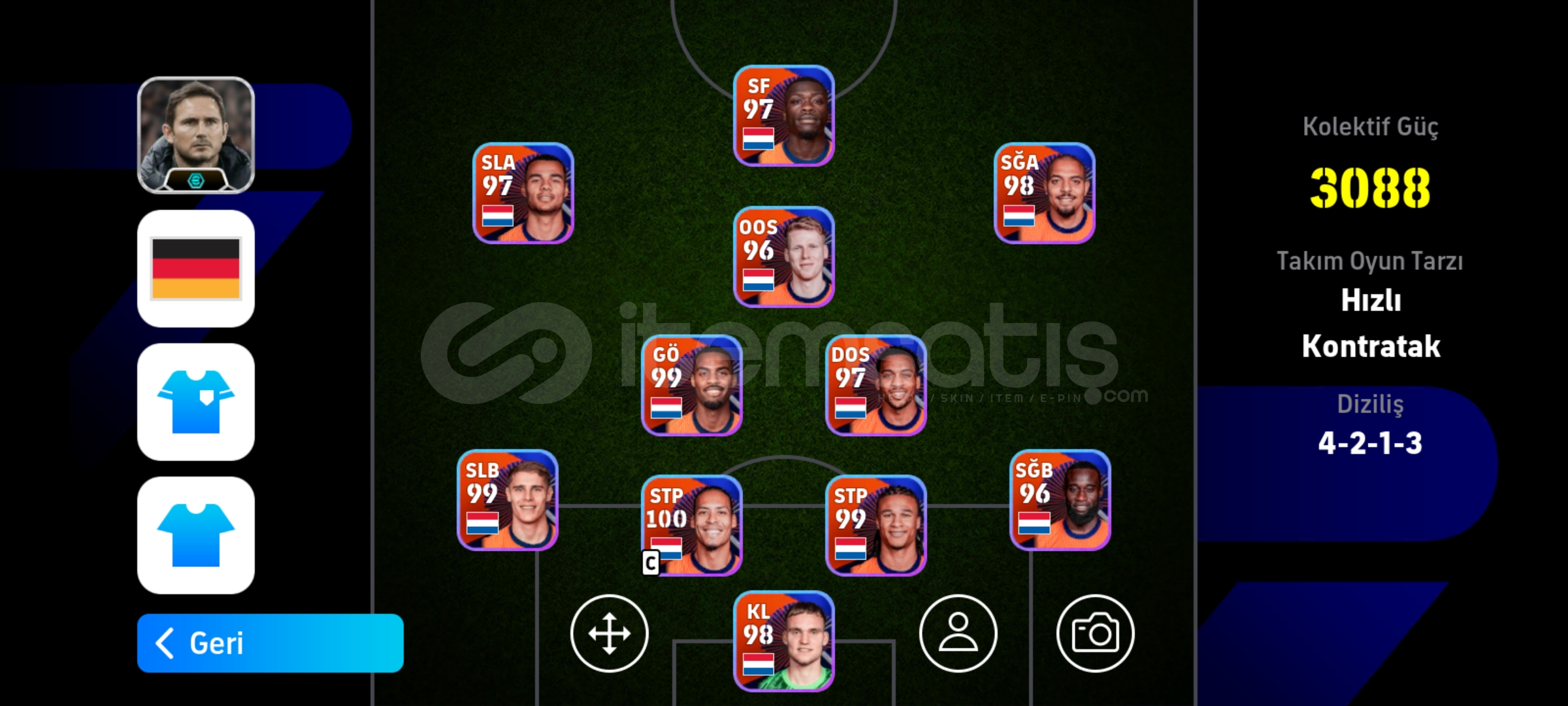 Hesap göründüğü gibi tertemizdir.Hollanda paketi alınmıştır.oyuncuların kalitesi ortadadır tek bağdır.