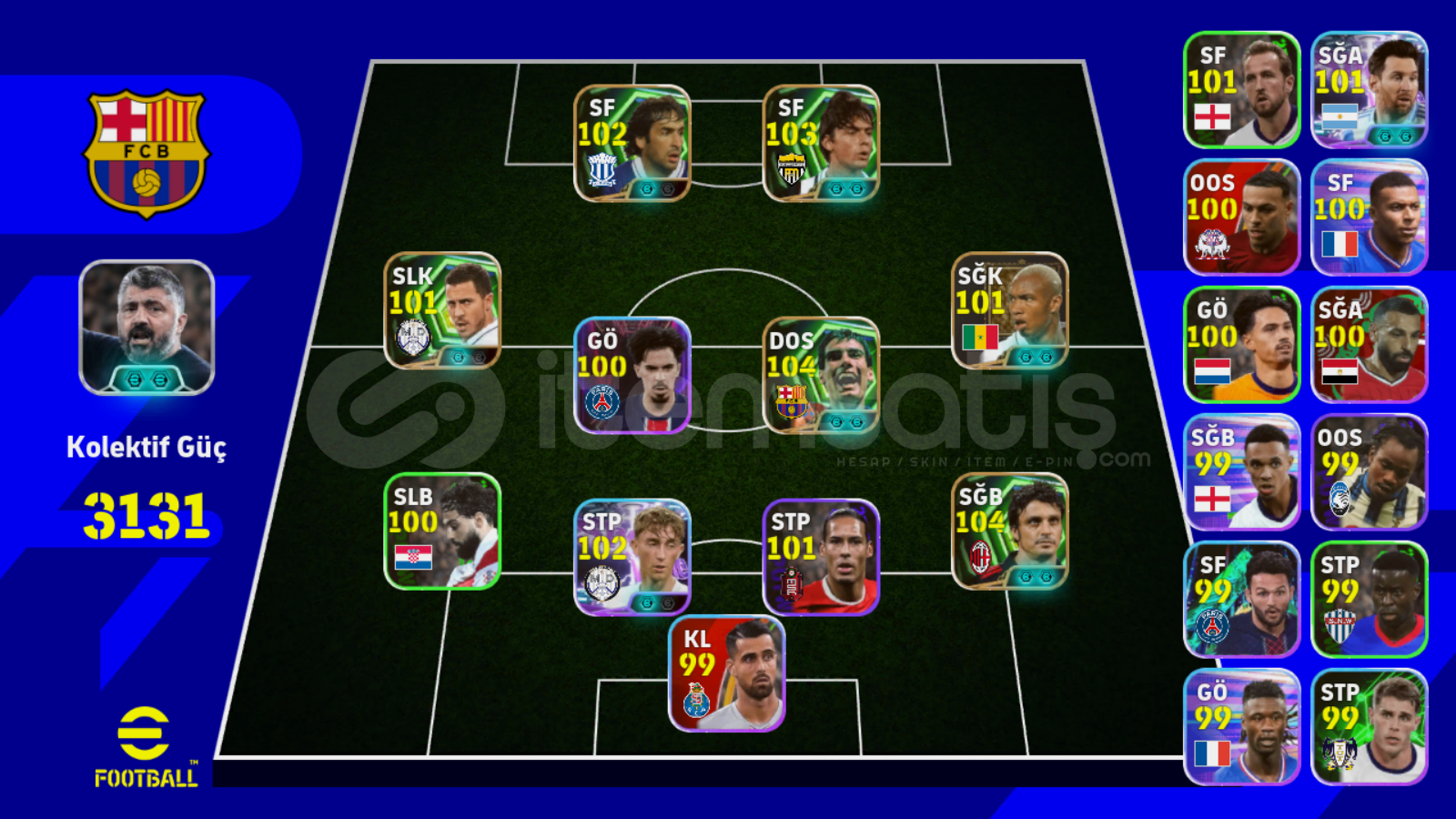 ÇİFT BOOSTLU MENEJER102 raul103 inzaghi101 el hajdi diouf104 oddo104 guardiola101 van djk100 vitinha101 hazard101 messi102 hujsen