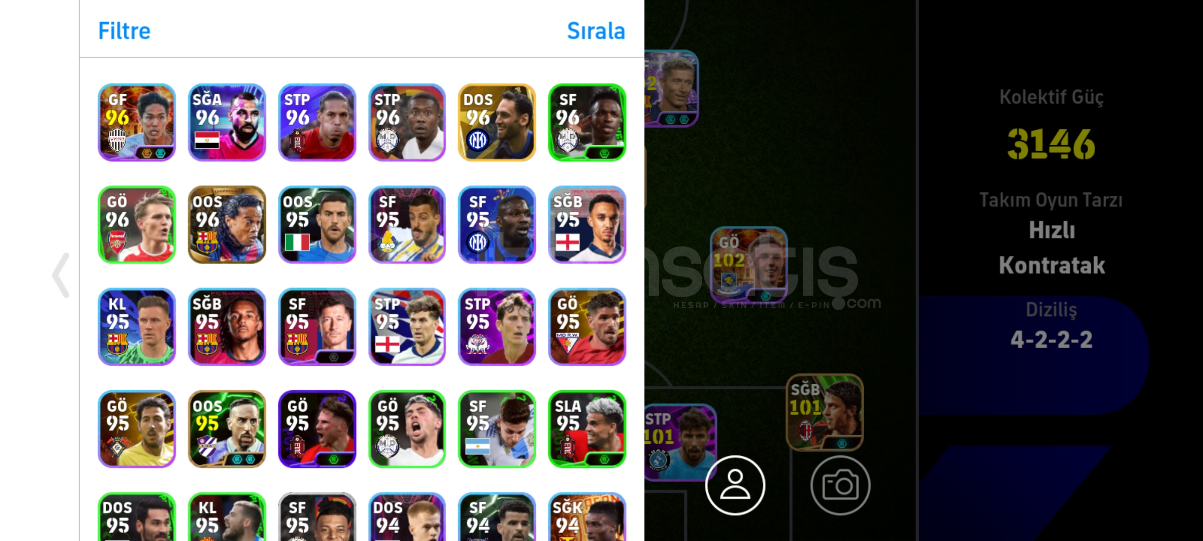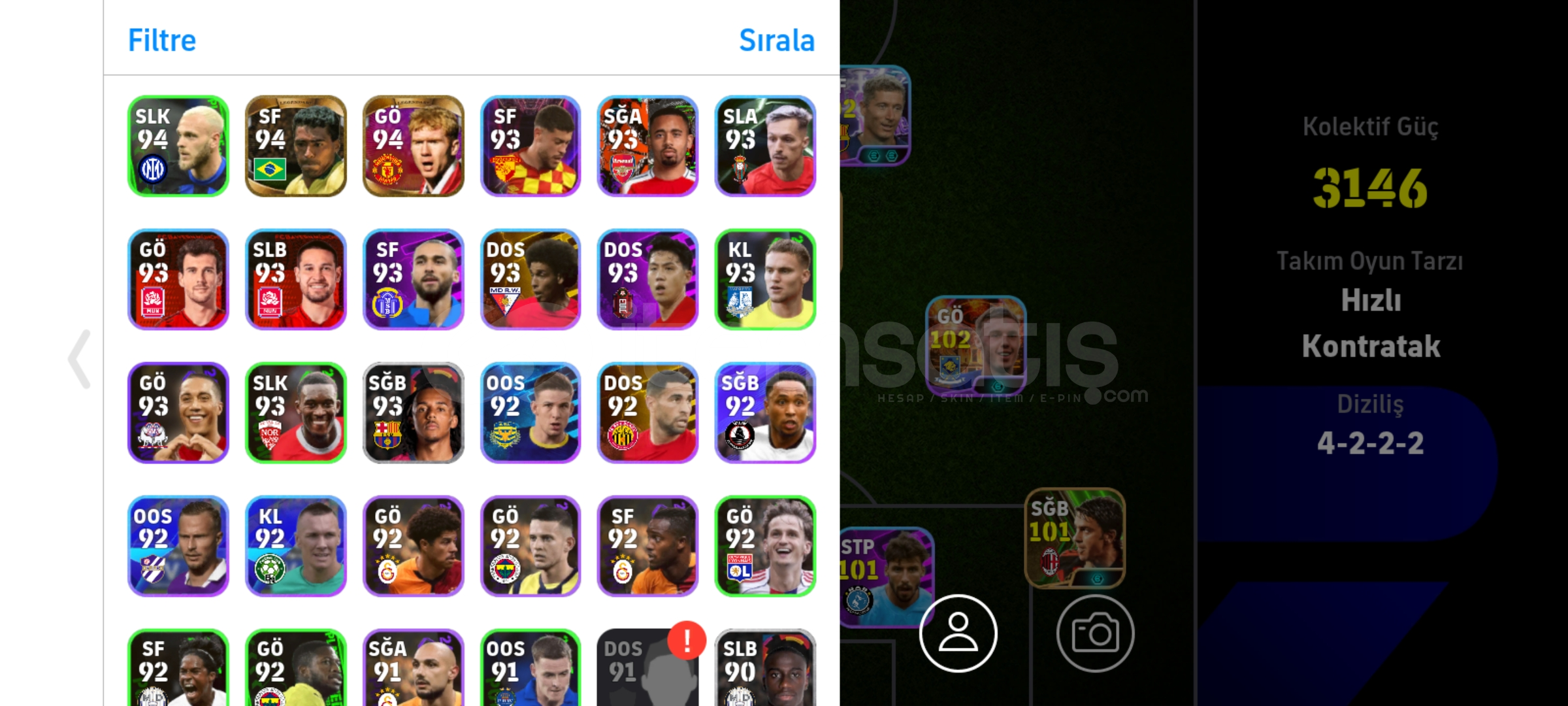 Bu fiyata yok hesap dip dolu 105 Messi,102 palmer,102 hones, ve daha fazlası rezerve dolu,DP dolu, güçlendirici idare eder,tek bağ alana hayırlı olsun