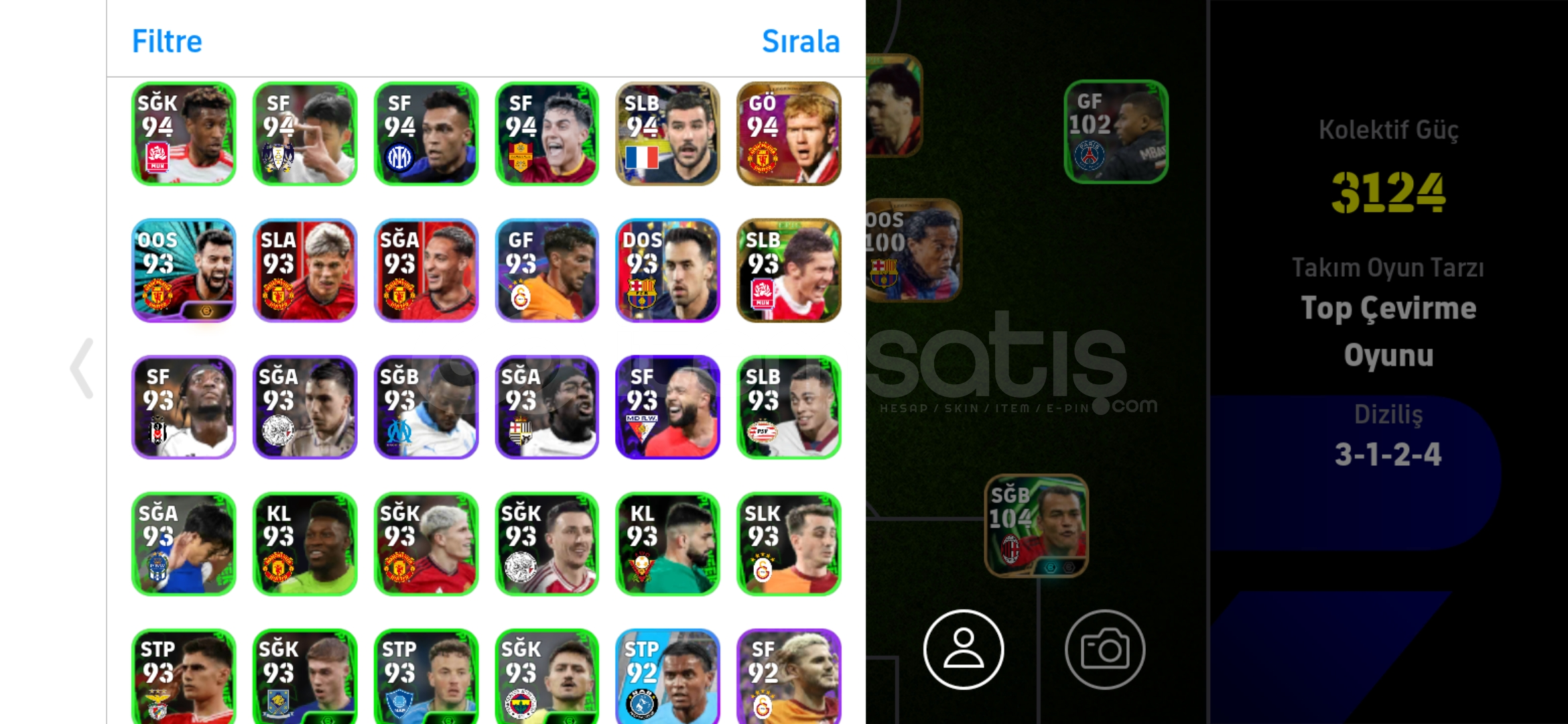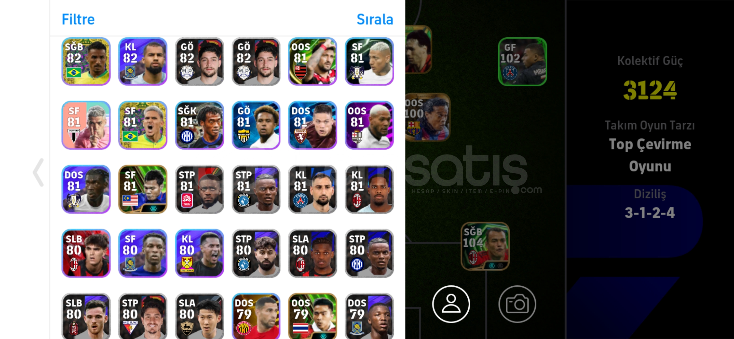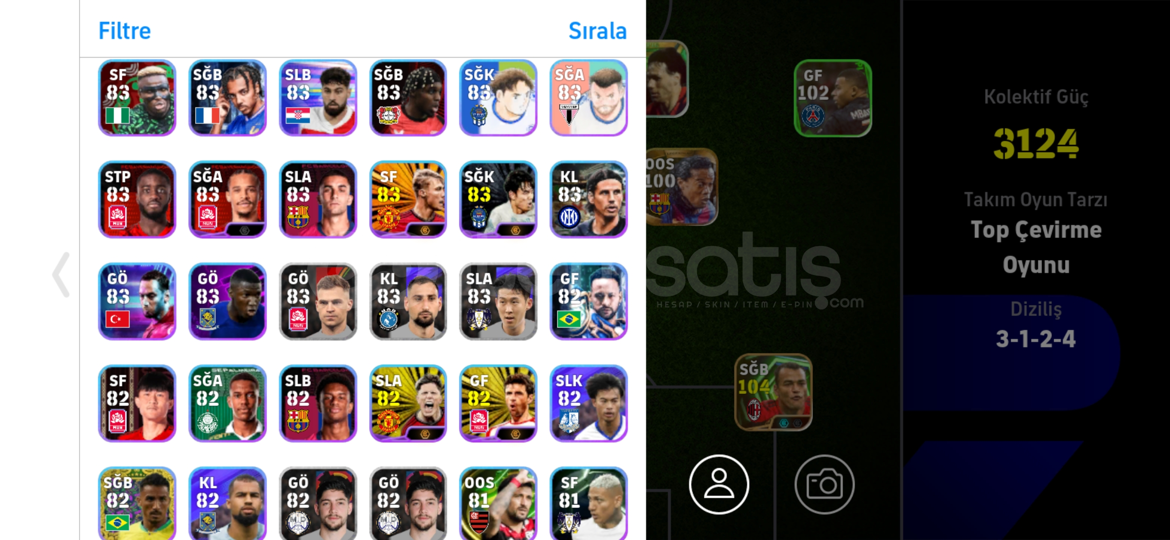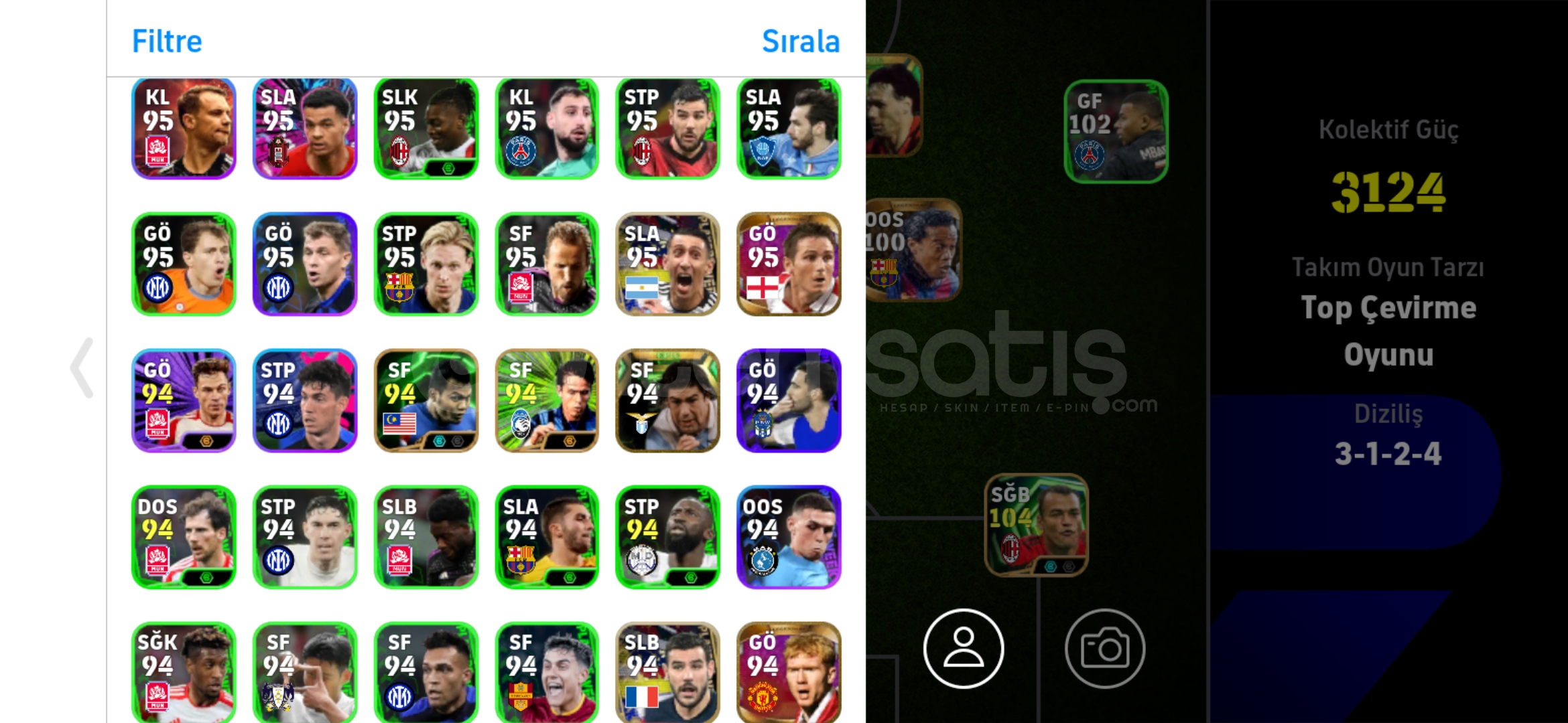 Hesapta gördüğünüz gibi;105 cafu tekte çıktı.100 Ronaldinho efsanevi (ikon) kart101 Dwight Yorke102 mbappe (psg kartı)102 Bombacı Micheal olise101 serginho100 De light (2023 nadir kart)100 Van Basten (aşırı ender)99 Oliver kahn (EFSANEVİ İKON KART)99 Del piero (EFSANEVİ İKON KART)99 Paul Scholes (EFSANEVİ İKON KART)99 Lampard (EFSANEVİ İKON KART)100 Maradona100 Ronaldo100 benzema (aş&#...