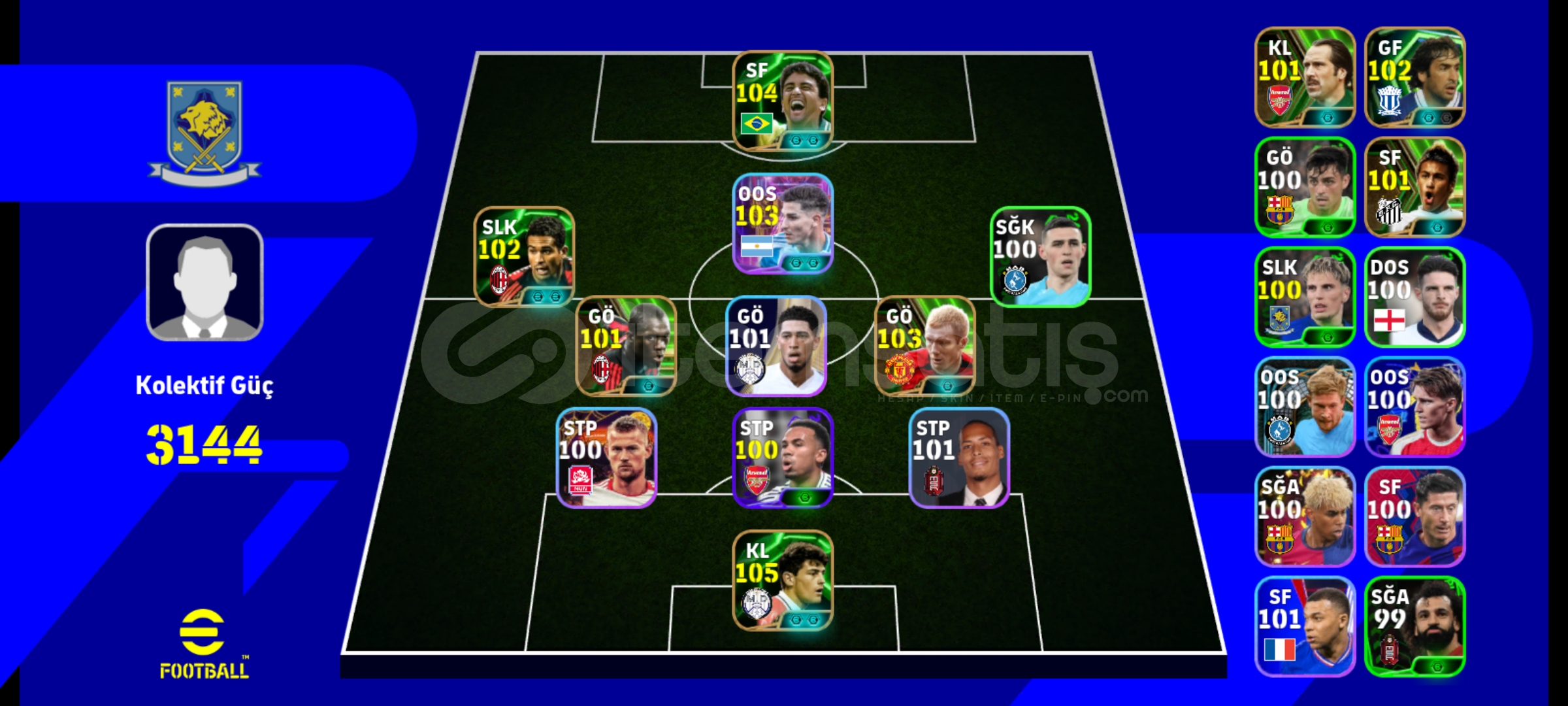 105 Casillas104 Bebeto103 Julian Alvarez103 Paul scholes102 Raul102 Serginho101 Seedorf101 Neymar101 David Seaman Kadro dışı kartlar mevcut Konami ID ye tek bağ E-posta adresi değiştirme de yardımcı olurum
