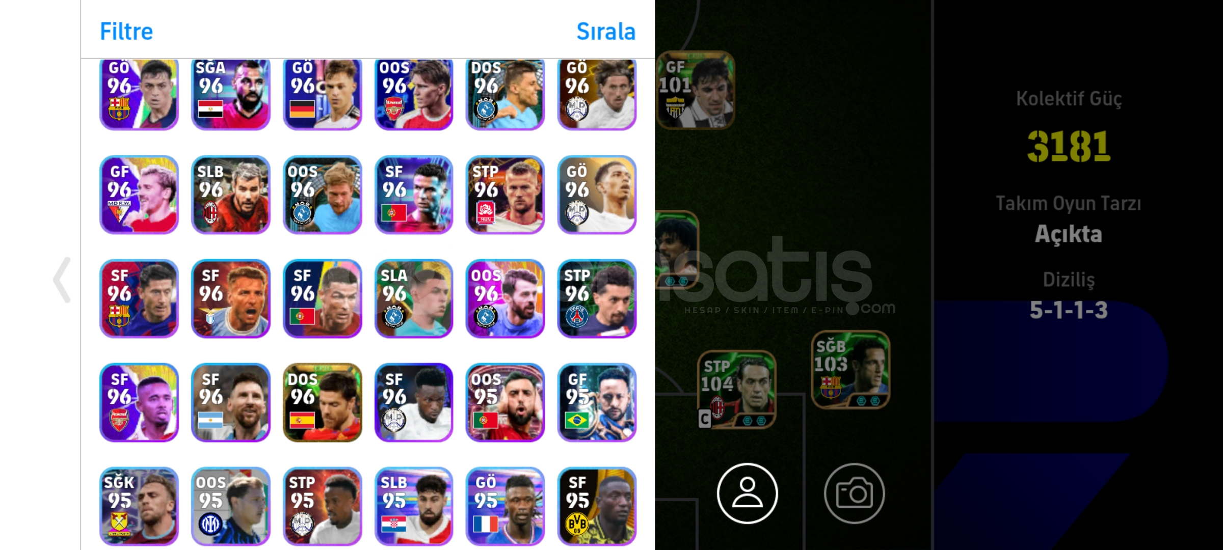 ⭐Cift bag hesap sorunsuz sorun yasanmasi durumunda iade vardir.⭐İade sartlari;Video kanıt mevcut olmalıHesaba baskasinin giris yaptigini teyit eder nitelikte olmali⭐Not: hesap ortalama 3 4 aydir bende sorun yasanmadi giris yoktur.⭐Hesapta eski kartlar bulunmakta rezervi doludur kadrosunda nadir kartlar mevcuttur.⭐Hesaptaki bazı kartlar;105 gullit2022 big time messi104 paul scholes(eski epic kartı)101 david seaman101 del piero104nesta103...