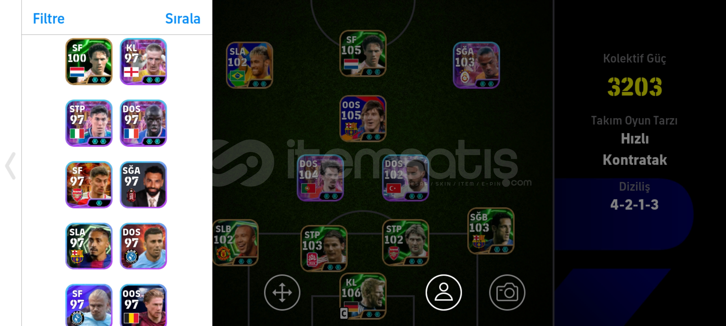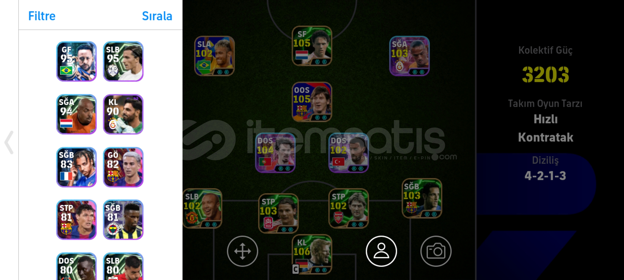 103Bombacı leroy sane105van basten102 Neymar mega çalım105 messi104 vitinhabu fiyata bu hesap