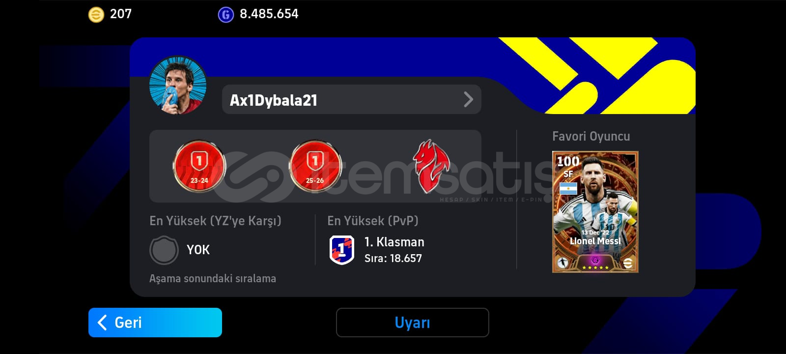 Öncelikle merhaba hesabım 3161 kollektif gücüne sahiptirHesabım 1. Klasmanda : 18.000 dünya sıralamasına sahip1 . Fotoğrafta maximum kollektif gücü gösterdim .2 . Fotoğrafta ise Epiclerle olan kadroyu gösterdimHesapta 8 milyon GP mevcuttur200 MC mevcuttur12 Forma7 Menejer360 OYUNCU VARDIR. DEDİĞİM GİBİ BOL REZERV .2021DEN KALMA HESAPTIR ÇOK DEĞERLİDİRDaha önceden görmedi...
