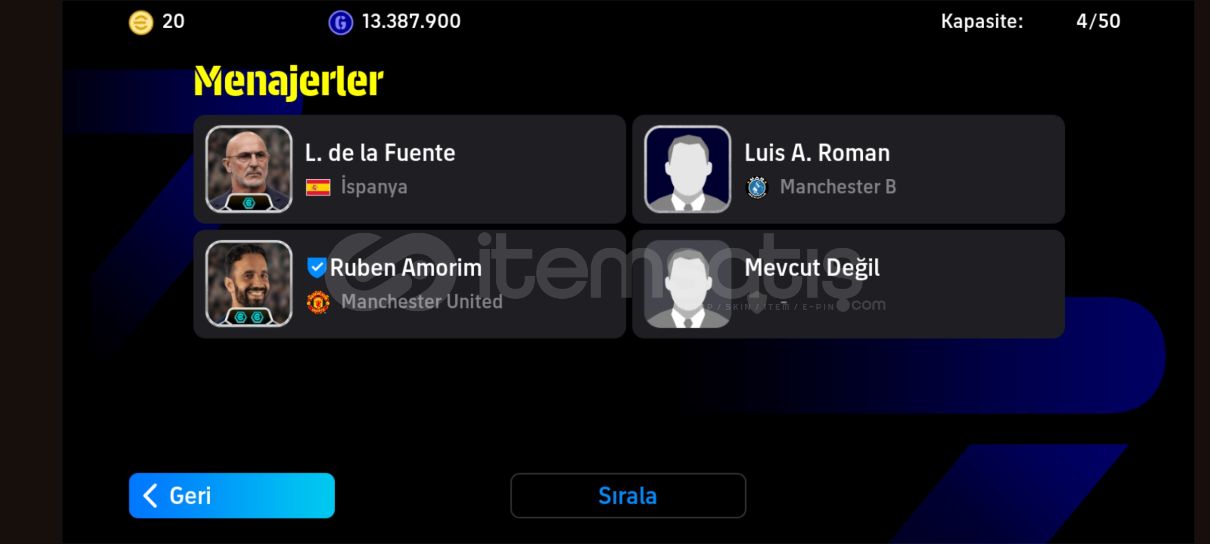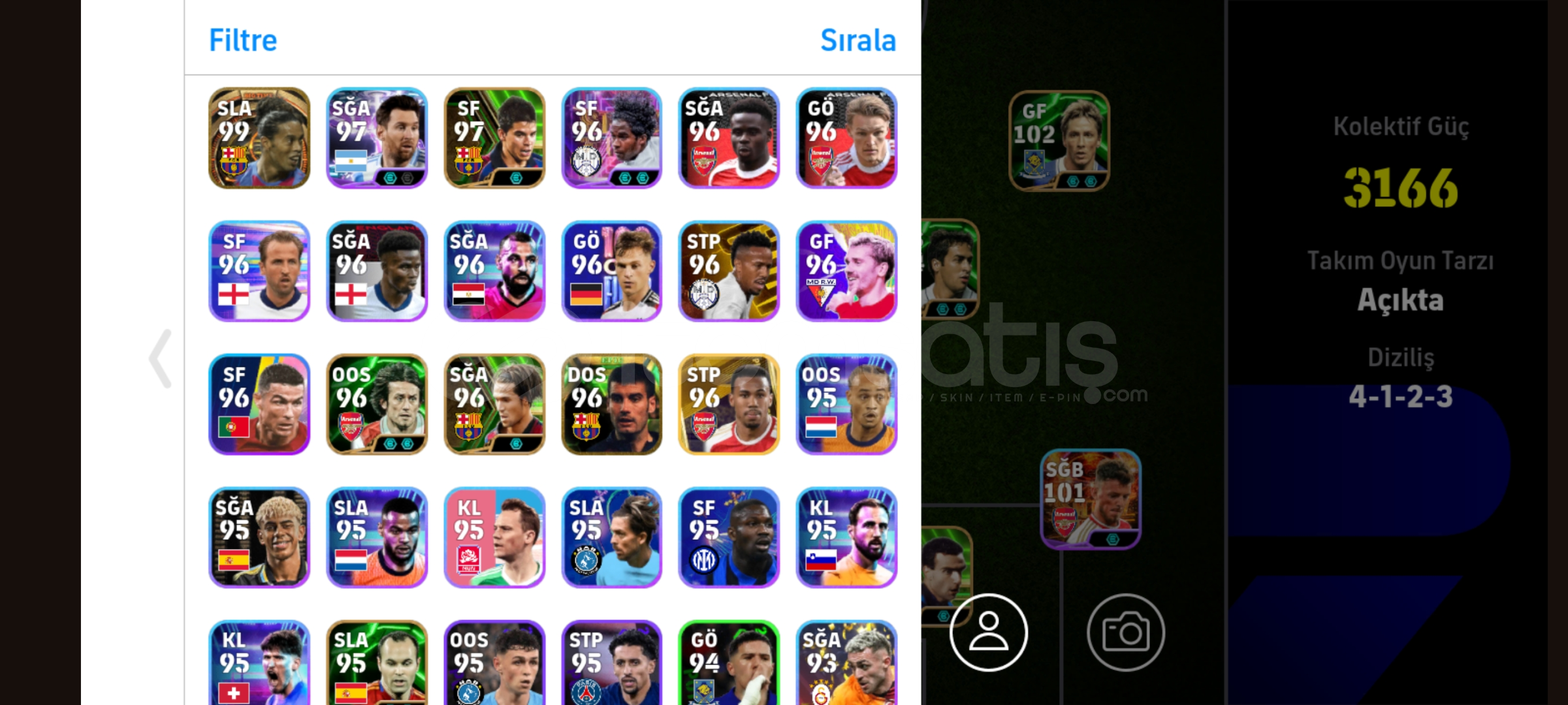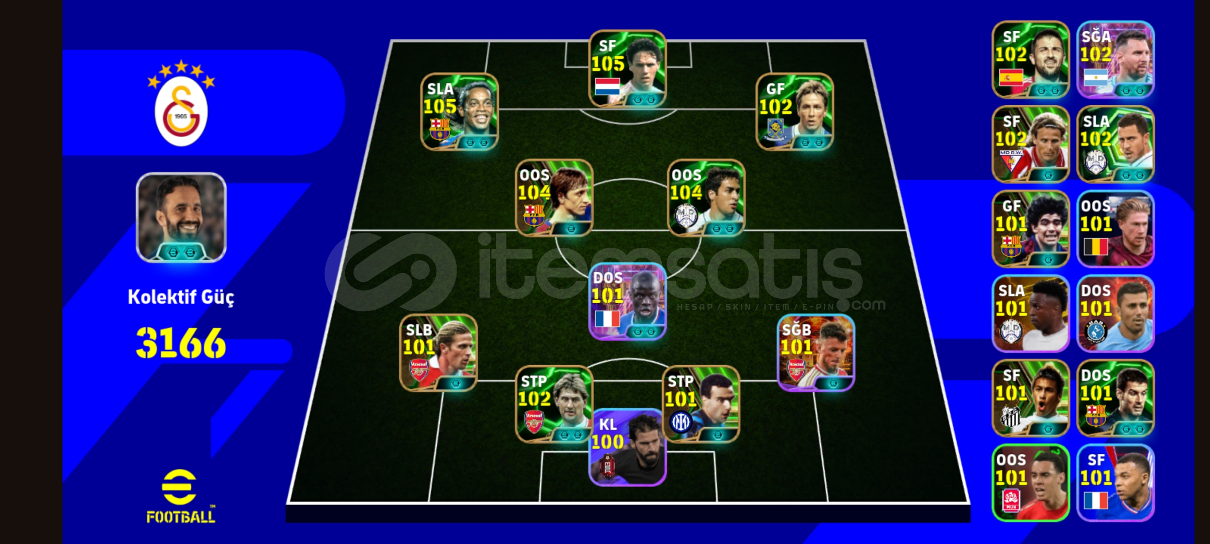 Hesabım emek hesabıdır hesapta görmüş olduğunuz gibi 105 Ronaldinho 104 Cruyff 105 Van basten gibi nadir kartlar vardır hesabımın hücum hattı üstduzeydir hesabım tek bağdır konami idye bağlıdır alıcı sorun yaşamaz yeni sahibine hayırlı olsun