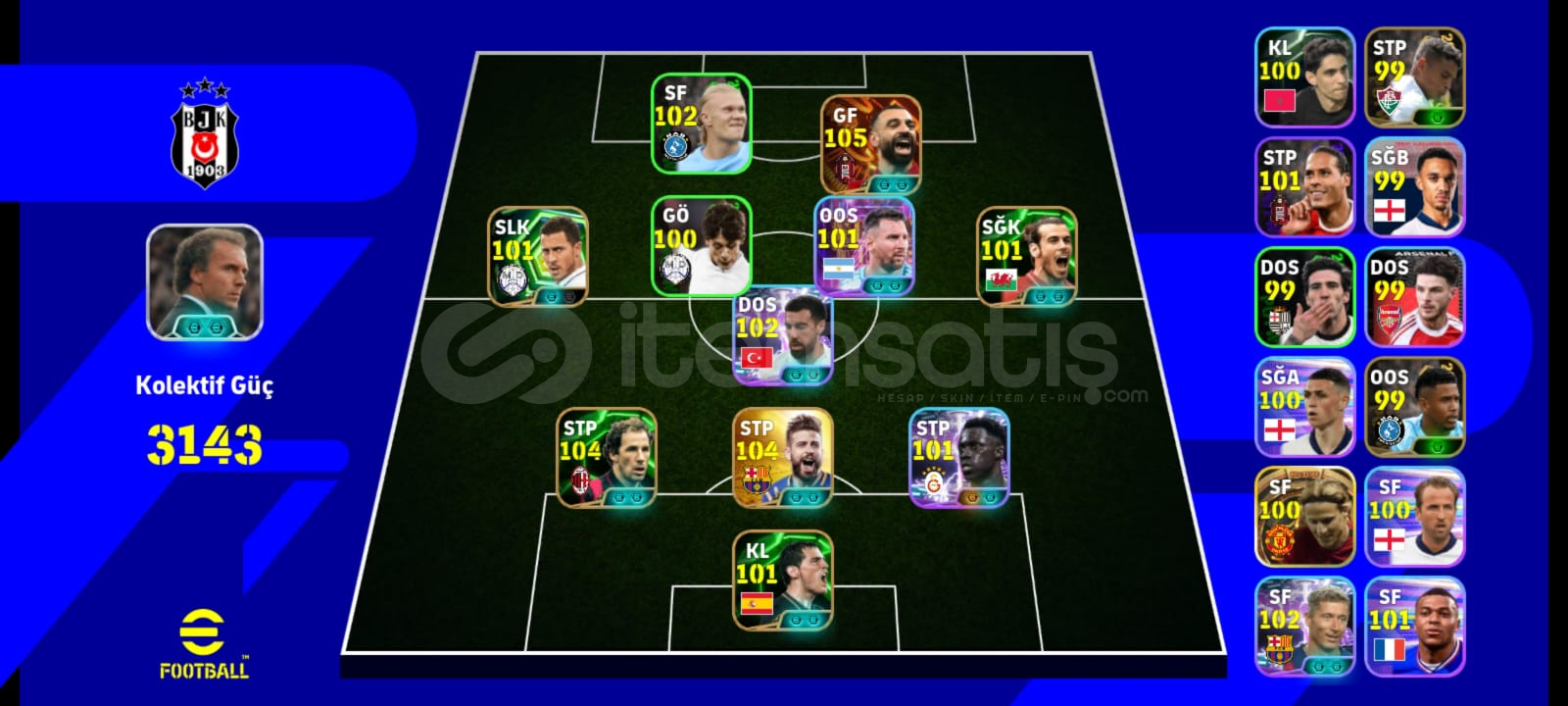 105 Salah102 Bale104 Pique102 Davinson Sanches104 Baressi100 Arda Güler102 Orkun Kökçü102 haalandTeknik direktörBeckenbauerHesap tek bağdır mailinize aktarıp verilecektir.İndirim yapılır.