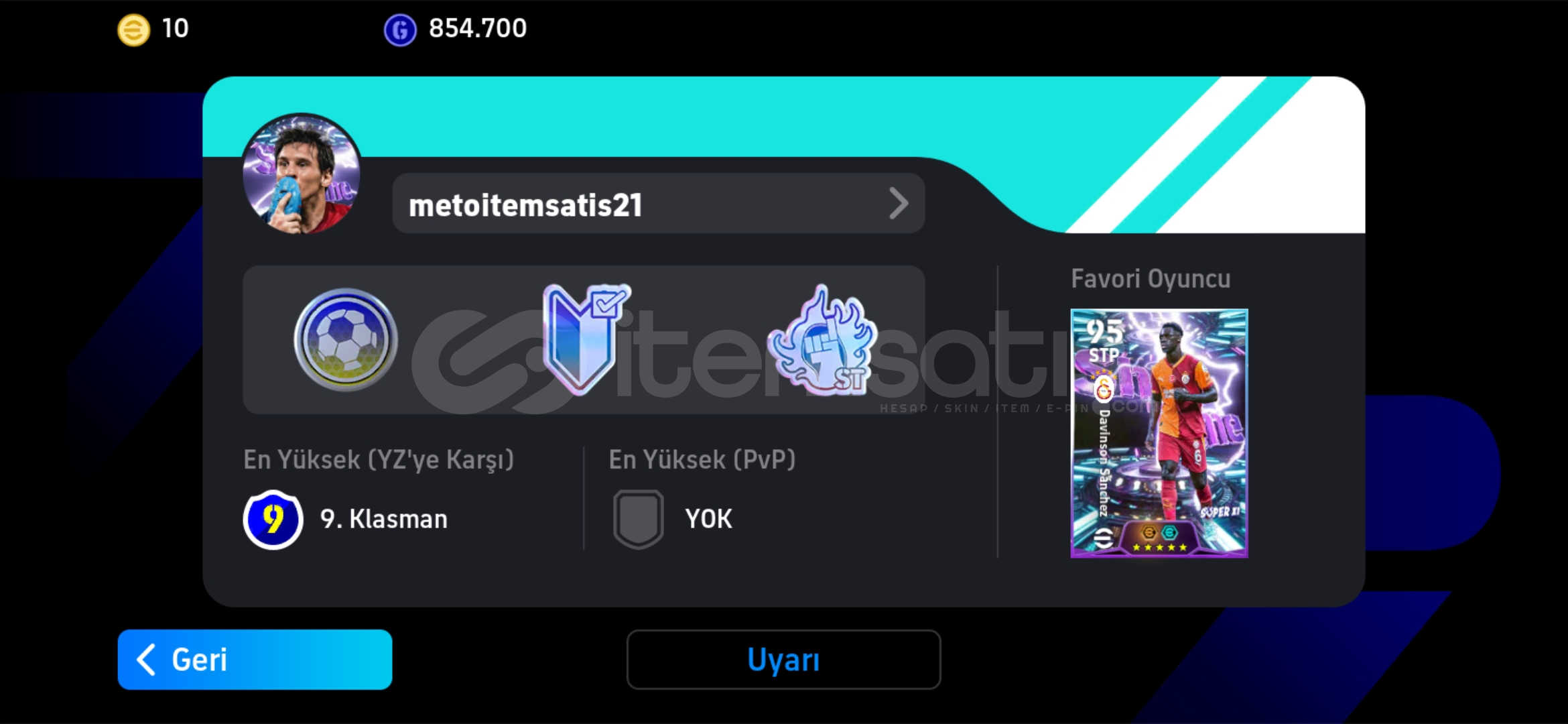 ✨ MetoGrimes Mağazası ✨Yüksek Memnuniyet Garantisi Verdiğimiz MetoGrimes Mağazamıza Hoşgeldiniz! Ürün hakkında detaylı bilgiler aşağıda yer almaktadır!Hesap Özellikleri : 105 SANCHEZ 102 MESSİ TEK BAĞ UYGUN BÜTÇELİ HESAP ✅️— MetoGrimes Güvencesiyle keyifli alışverişler dileriz!🔗 Tek bağdır.✉️ E-posta değ...