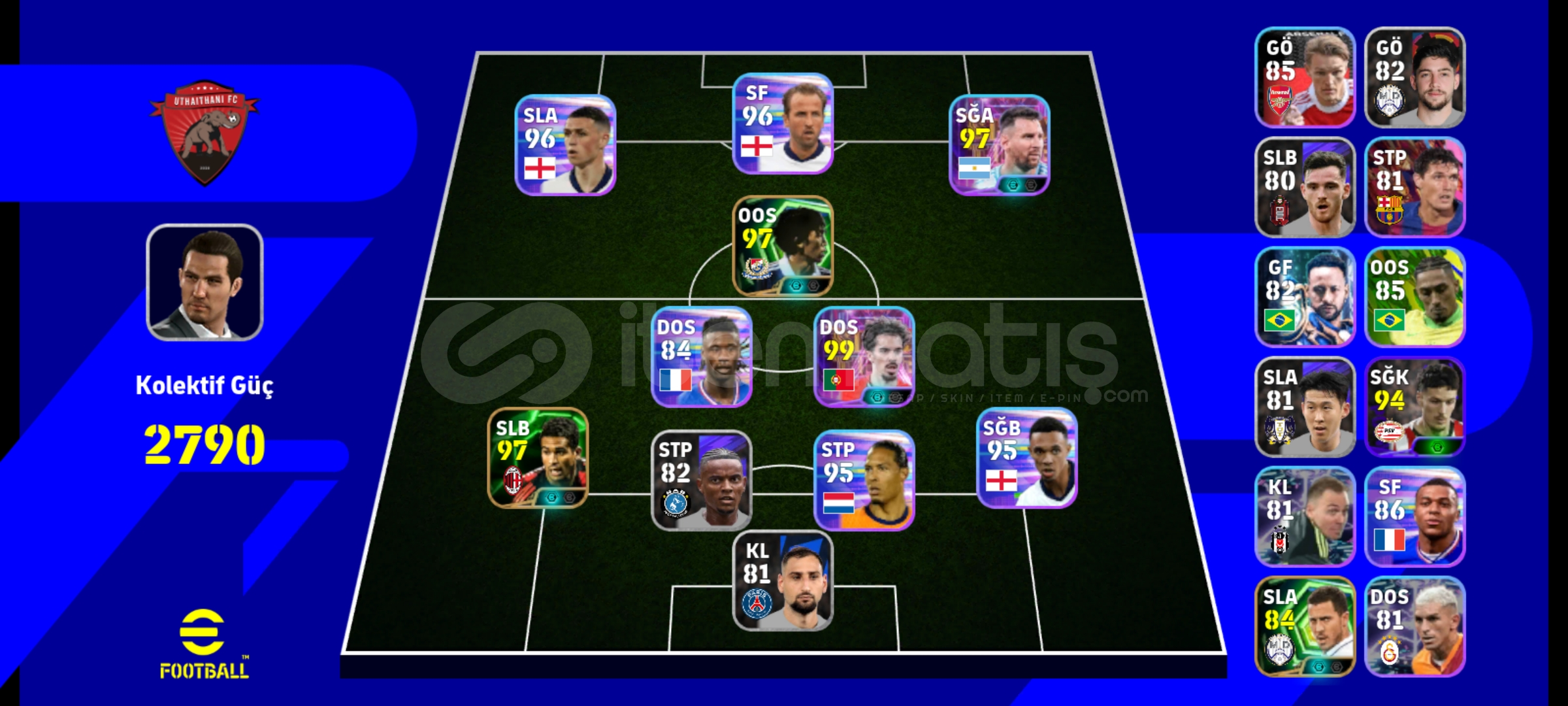 ✅ Takım Gücü: [2790]✅ Efsanevi / İkonik: [vitinha+Bombacı]✅ GP: [400k ivarı]✅ MyClub Coin: [0-100 arası]✅ Bağlı Platform: Konami ID (devredilebilir)✅ Durum: Ban riski yok, şahsi hesap💵 Fiyat: [70] — Ciddi alıcılar için pazarlık kabul edilir !Kolegtif güce fazla takılmayın oyuncuları yükseltip teknik direktör alınırsa 3070 gör&...