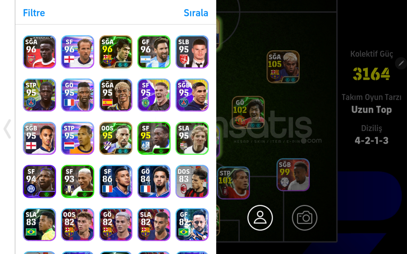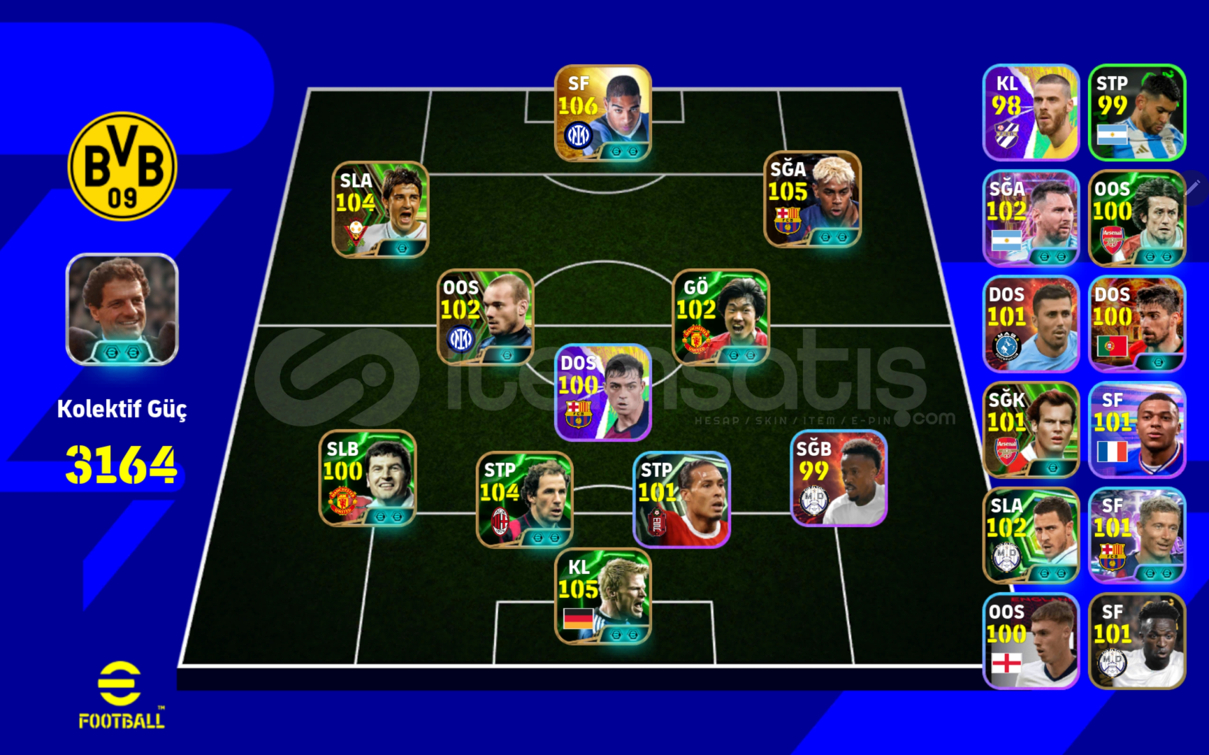 Teknik direktör amorim ve Capello vardır106 Adriano106 yamal106 khan105 baresiHesap resimlerde görüldüğü gibidir.Tek bağdır.
