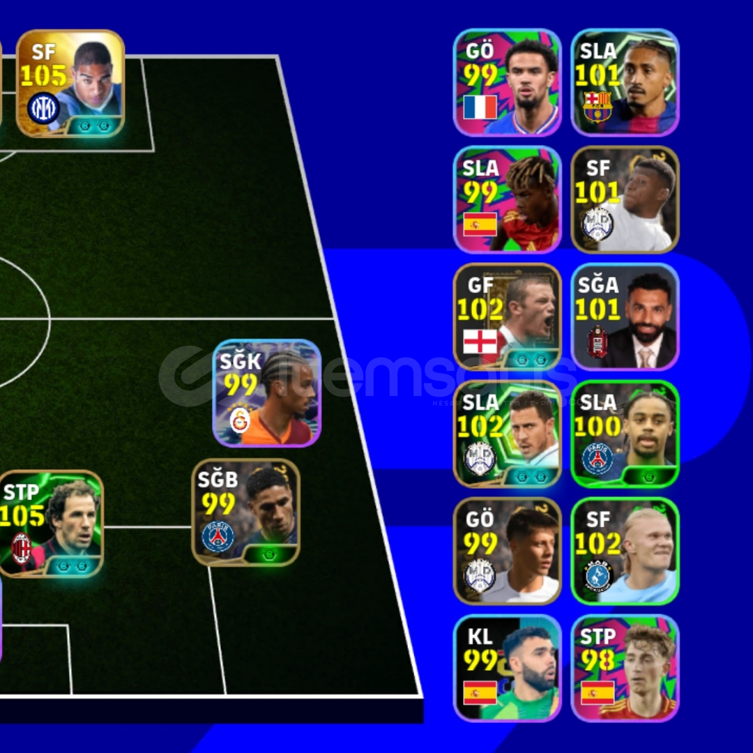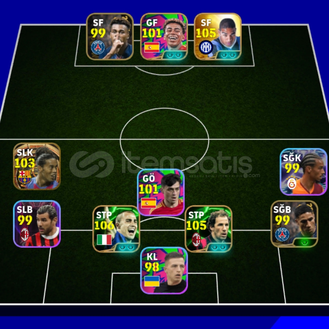 Bu hesapta 106 adriano 106 cannavaro 105 baresi lamine yamal paketi vardır ve daha çok fazla epic vardır alana hayırlı olsun