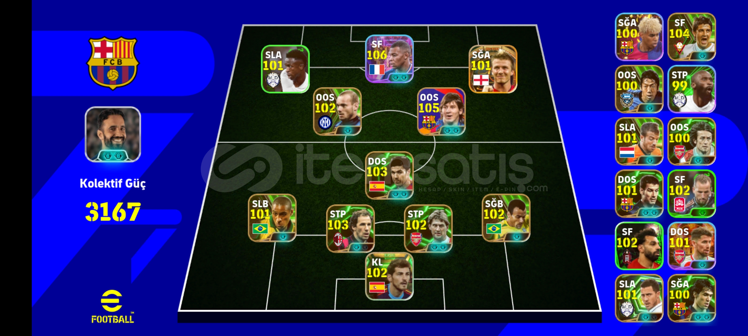 Hesabtaki çift guclendiricili oyuncular yükseltilirse ve Carlos ozel basım yapılırsa 3170 civarı olur zararjna satış yapiyorum