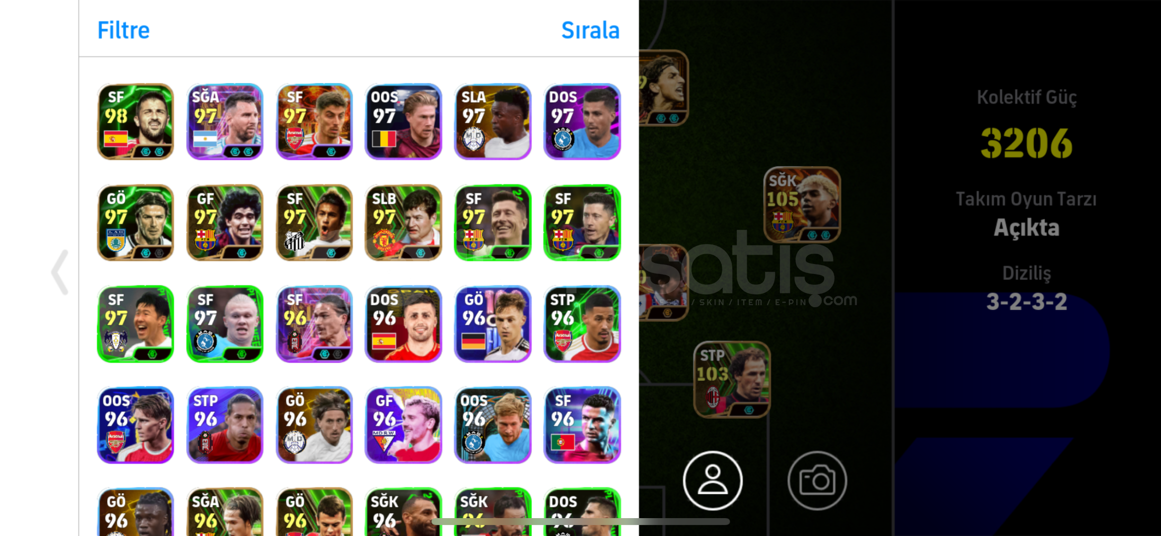 Selamun aleyküm arkadaşlarHesapta 106 Ferdinand 105 suarez 106 yamal 110 İbrahimovicEn yüksek 3208 oluyor.Kendi özel hesabımdır.2021 hesabıdır.2021den kalma bir sürü kart var en önenimlisi Rashford!!20 MyClub ve 10.000.000 Gp vardır.Aklınızda soru varsa sorabilirsiniz.Pazarlık sünnettir teklif vermekten kaçmayınız.Alana hayırlı olsun.